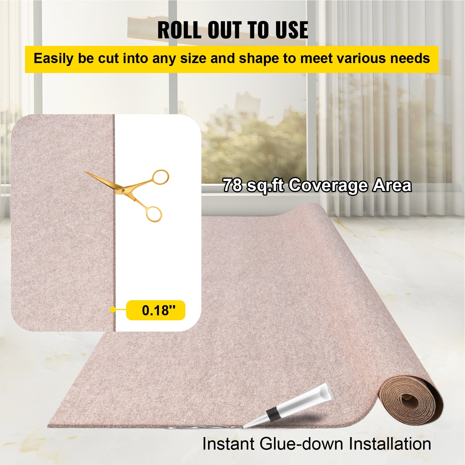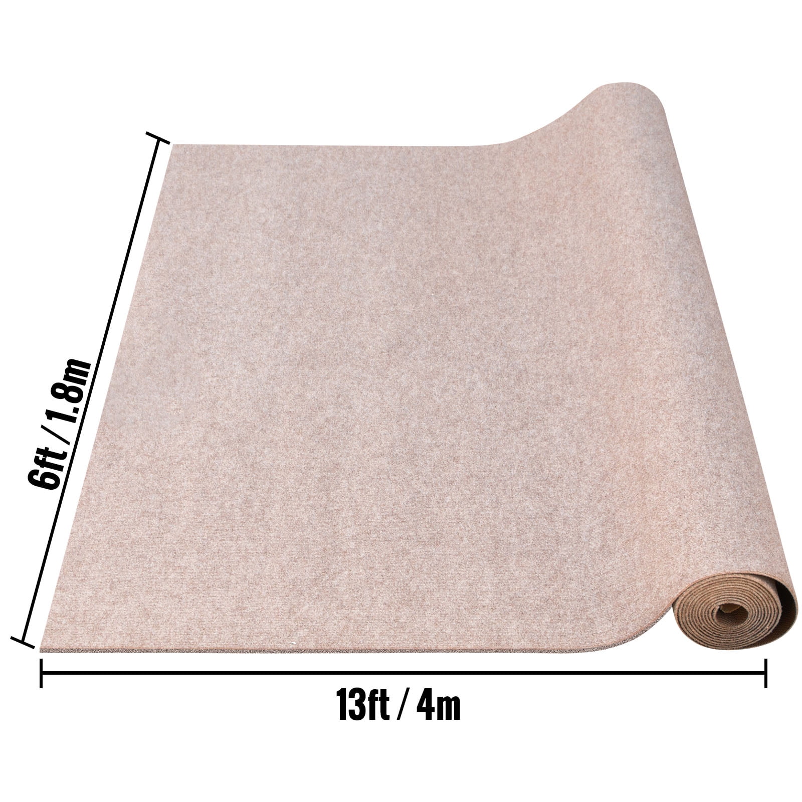 Brand Introduction VEVOR is a leading brand that specializes in equipment and tools. Along with thousands of motivated employees,VEVOR is dedicated to providing our customers with tough equipment & tools at incredibly low prices. Today, VEVOR has occupied markets of more than 200 countries with 10 million plus global members. Why Choose VEVOR? 1.Tough Quality Assurance 2.Incredibly Low Prices 3.Fast & Secure Delivery 4.30-Day Free Returns 5.24/7 Professional Customer Service Product Description 6×13.1 ft Marine Carpet This is a fashion carpet for marine and home patio use. Made of high-quality polyester fiber and TPR backing, it is water, oil, and ravel resistant. It will restore your classic old boat and bring extra beauty to space. Easy to clean and maintain, quite suitable for both home and commercial occasions. Excellent Polyester Fiber This outdoor marine carpeting is made of excellent polyester fiber, and it is stain, oil, and color-fade resistant for longer service time. Anti-Slide Surface The 4.5 mm pile height of our carpet for the boat is ravel-resistant to offer an extra fraction. Thus, it will ensure no bump or sliding on walking. Use Scissors to Cut For different places, you may need rugs in various shapes or lengths. Our light brown outdoor marine carpet can be cut by scissors easily. Vacuum & Sweep Clean Sweep or vacuum the dirt, debris on the surface of this boat deck carpeting quickly. Or use store-bought carpet cleaner for stubborn stains. Water-proof TPR Back The back of the boat carpeting is of great water-proof function with TPR material. Just roll out the carpet and install it on the floor. Wide Use Applications This outdoor marine carpet is particularly a good match for boats, trucks, RVs, and it can also be used as the dock carpet and raft carpet. Specifications Color: Light Brown Product Length: 13.1 ft / 4 m Product Width: 6 ft / 1.8 m Material: Polyester Fiber + TPR Carpet Thickness: 0.18″ / 4.6 mm Pile Height: 0.17″ / 4.5 mm Carpet Weight: 1.1 kg/㎡ Package Content 1 x Marine Carpet