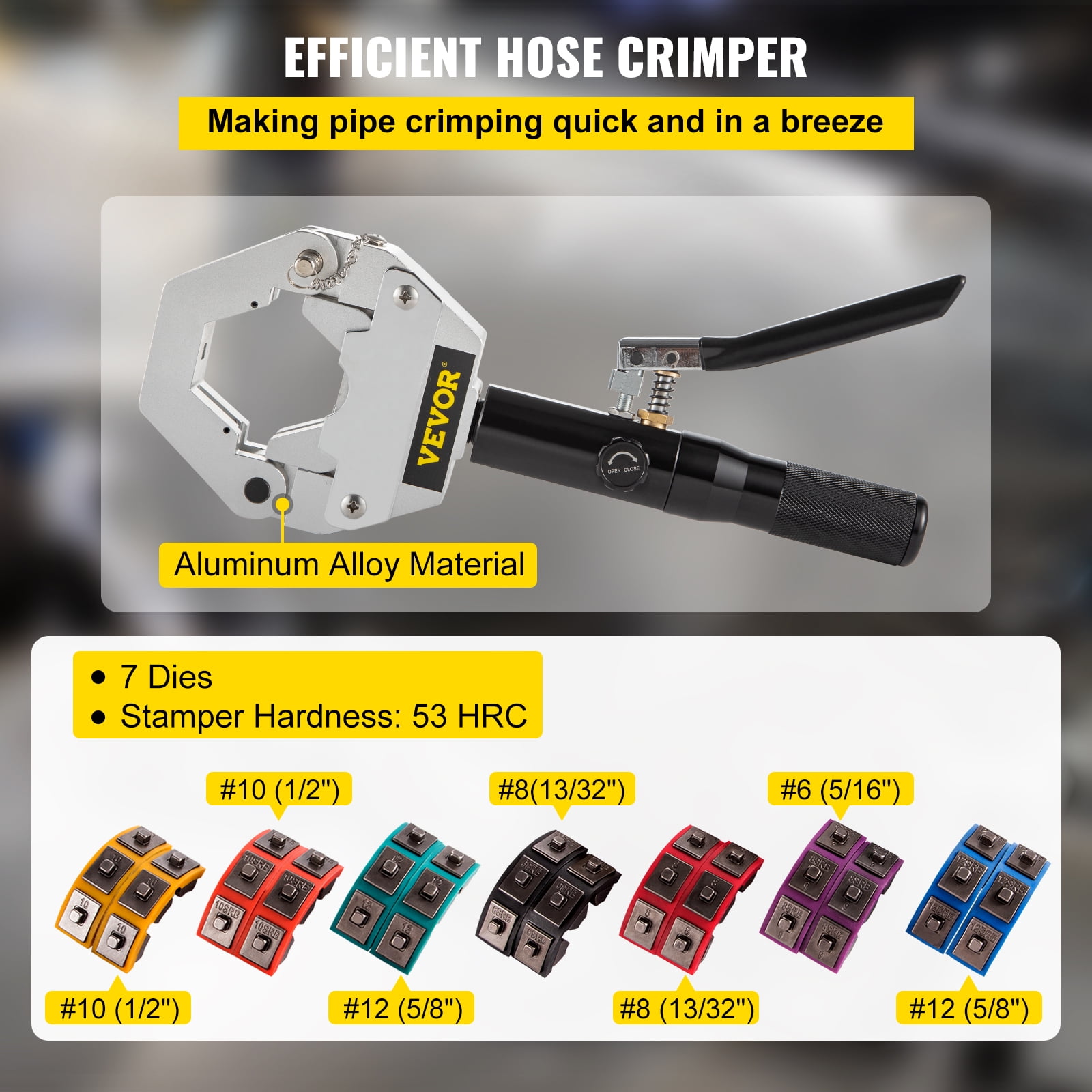 VEVOR Hydraulic Hose Crimper Hydra-Krimp 71500,Manual AC Hose Crimper Kit Air Conditioning Repaire Handheld,Hydraulic Hose Crimping Tool with 7 Die Set, for Barbed and Beaded Hose Fittings