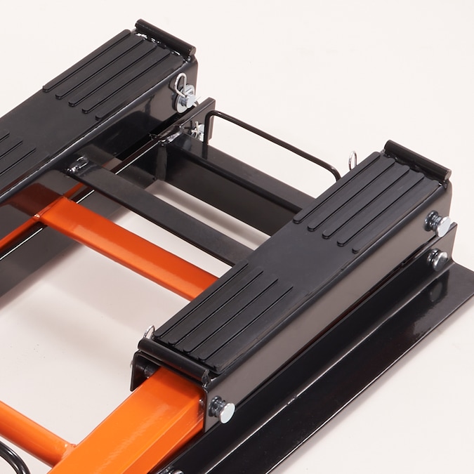 - High-quality Steel Material: Made of high-strength solid steel structure and coated with a bright powder coating, this motorcycle jack is rust, corrosion, and grease-resistant, ensuring a long-term use; Neatly store it in your garage or repair shop for easy access; Get your hydraulic motorcycle jack today and make motorcycle maintenance a breeze!