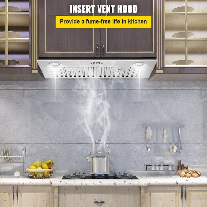 30 inch Built-In Range Hood: 800CFM Max Suction Speed and Stainless Steel and Push Button Control; Our insert vent hood adopts a premium galvanized motor for strong suction power with 3 adjustable fan speeds; It is easy to operate by pressing the control buttons to switch the modes; Double-layer filters are included to block grease and harmful particulates in the air; The 2 LED lights can illuminate the cooking zone perfectly; It is ideal for use in both ducted and ductless kitchens; Grease and smoke can create a messy cooking environment; Create a clean environment and safeguard yourself with our easy-to-use range hood; Powerful But Quiet; Easy-Operating Panel; Superior Filtration; Humanized Design; Ducted/Ductless Convertible; [Package Content] 1 x Built-in Range Hood; 1 x Duct; 1 x Carbon Filter; 1 x Manual