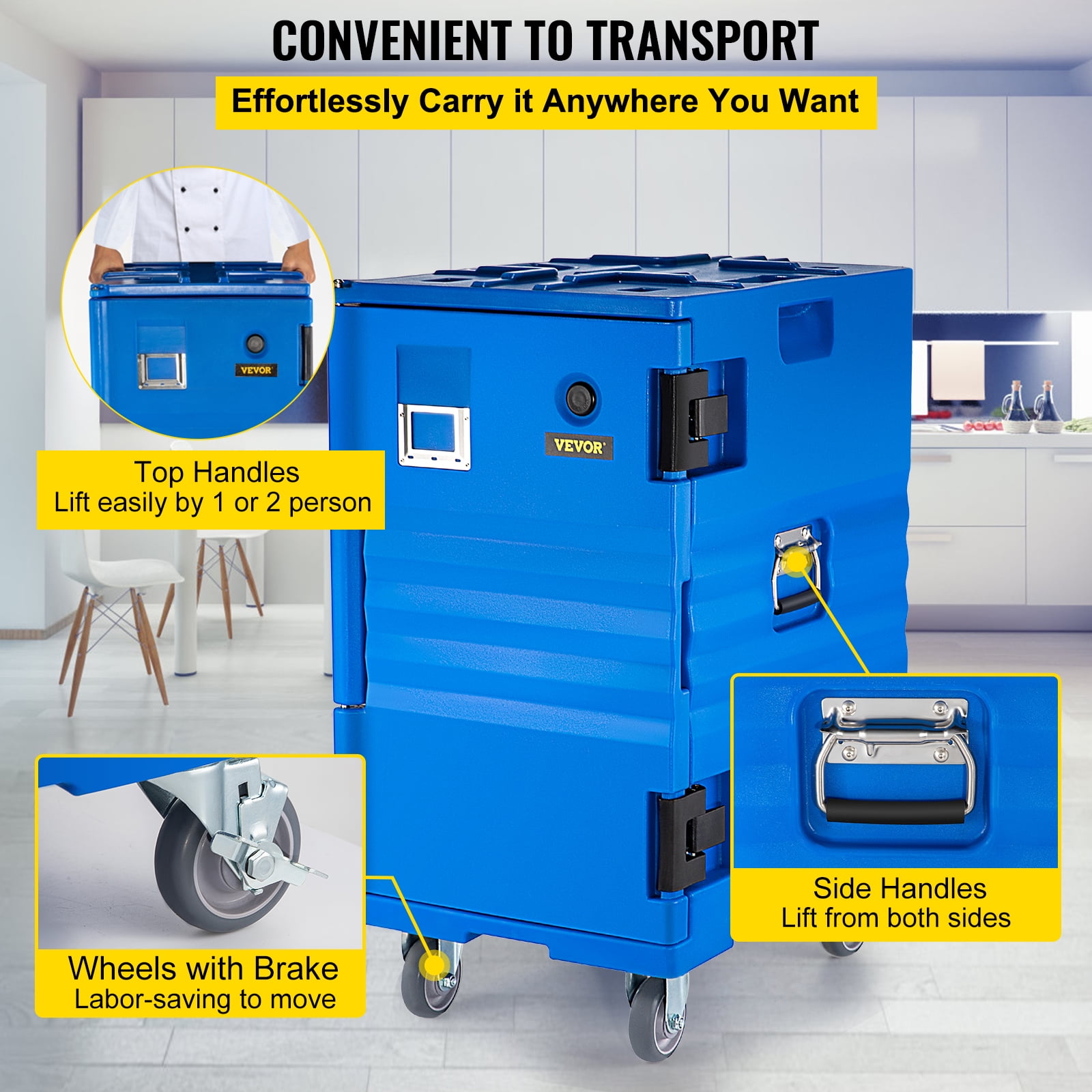 VEVOR Insulated Food Pan Carrier 109 Qt Hot Box for Catering, LLDPE Food Box Carrier with Double Buckles, Front Loading Food Warmer with Handles, End Loader with Wheels for Restaurant, Canteen, Etc.