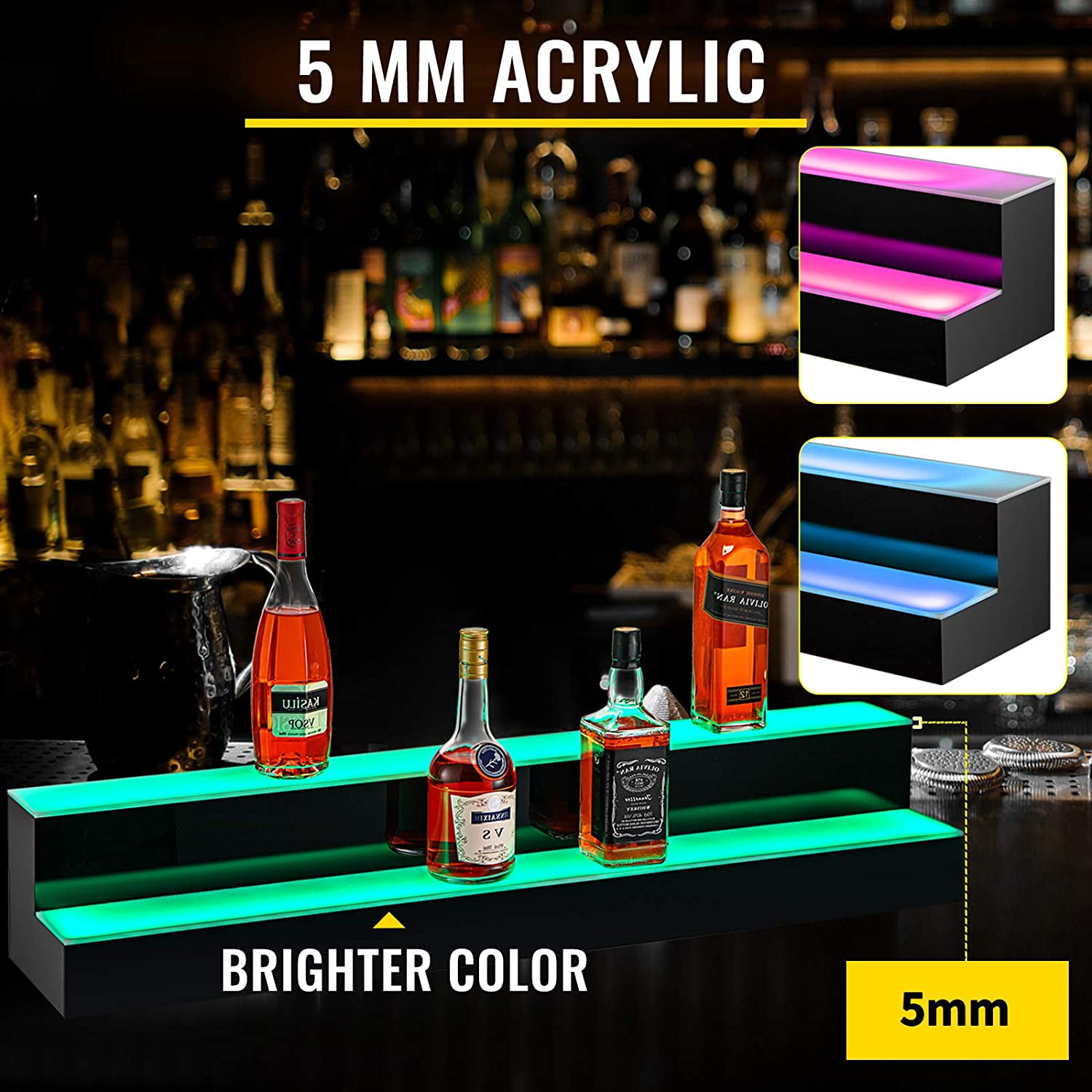 VEVOR Led Lighted Liquor Bottle Display Shelf 40-Inch,Led Bar Shelves for Liquor 2-Step Lighted Liquor Bottle Shelf for Home/Commercial Bar,Acrylic Lighted Bottle Display with Remote & App Control