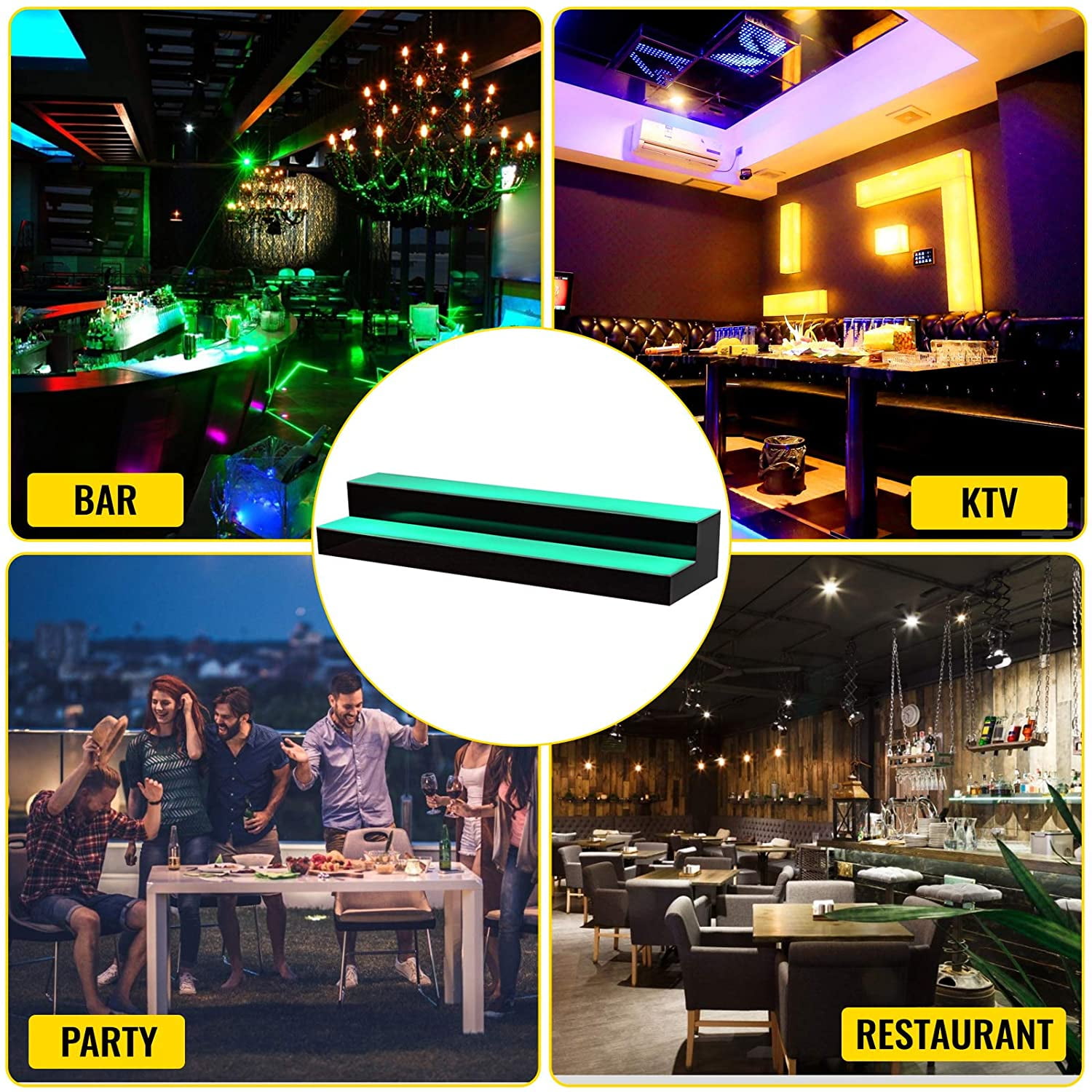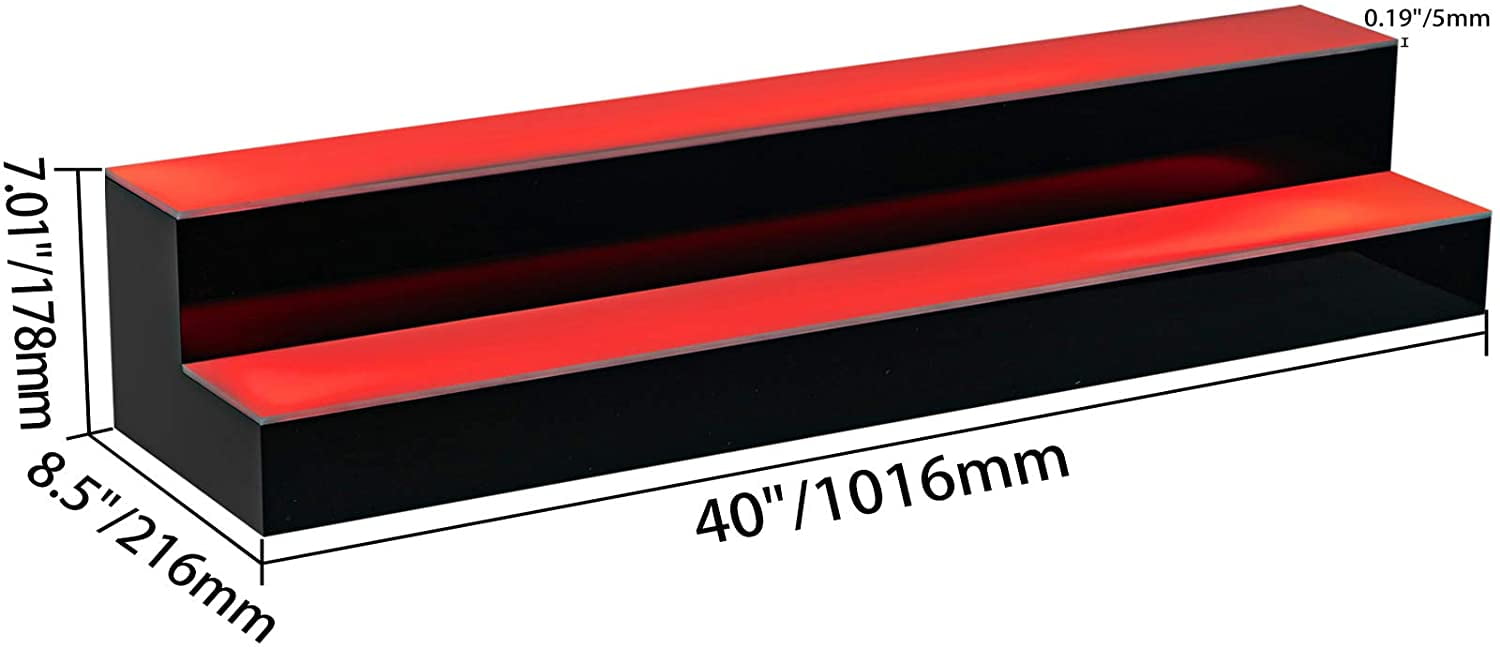 【44-KEY RF REMOTE CONTROL】- With the 44-key RF remote control, you can perform a series of settings on this 2-step 40″ LED-lighted liquor bottle shelf, which will be illuminated by the built-in LED strip lights in 20 static colors with brightness speed adjustment. Besides, 4 DIY modes are also available for you, dotting your room with a sense of rhythm. How long it jumps or fades is also entirely up to you. 【FEATURE-RICH APP CONTROL】- Apart from the remote control, our LED-lighted liquor bottle shelf can also be controlled through your mobile phone based on Bluetooth Technology. Scan the QR code on the control receiver and install Lotus Lantern, which is available on both App Store and Google Play; then, you can adjust the color, choose the flash style, and play the music stored on your device. 【DURABLE ACRYLIC SURFACE】- Made of premium acrylic material, this lighted liquor bottle display shelf emphasizes good hardness and transparency. The former ensures that the liquor shelf is resistant to wear and breakage, while the latter can show you brighter colors for a better display effect. Besides, the smooth acrylic surface is also convenient for you to clean and maintain. 【ADAPTABLE WITH 100-240V】- Compared with the ones supplied by fixed voltage, our LED liquor bottle display shelf is adaptable with wide voltage, ranging from 100V to 240V. With its advantages, the wide-range voltage can secure the stable power supply for reliable operation, whether it is the peak of urban power consumption or the shortage of power supply in remote areas. 【FOR HOME COMMERCIAL BAR】- As a decor for exhibition, this product can be used both for home and public places. It can create a fun ambiance and grab your guests’ attention if you place it in your kitchen to decorate your home bar. And for commercial bars and clubs, the space-saving LED shelf can help you display more bottles and glasses in a clear classification. Meanwhile, the illuminated liquors would attract more customers.