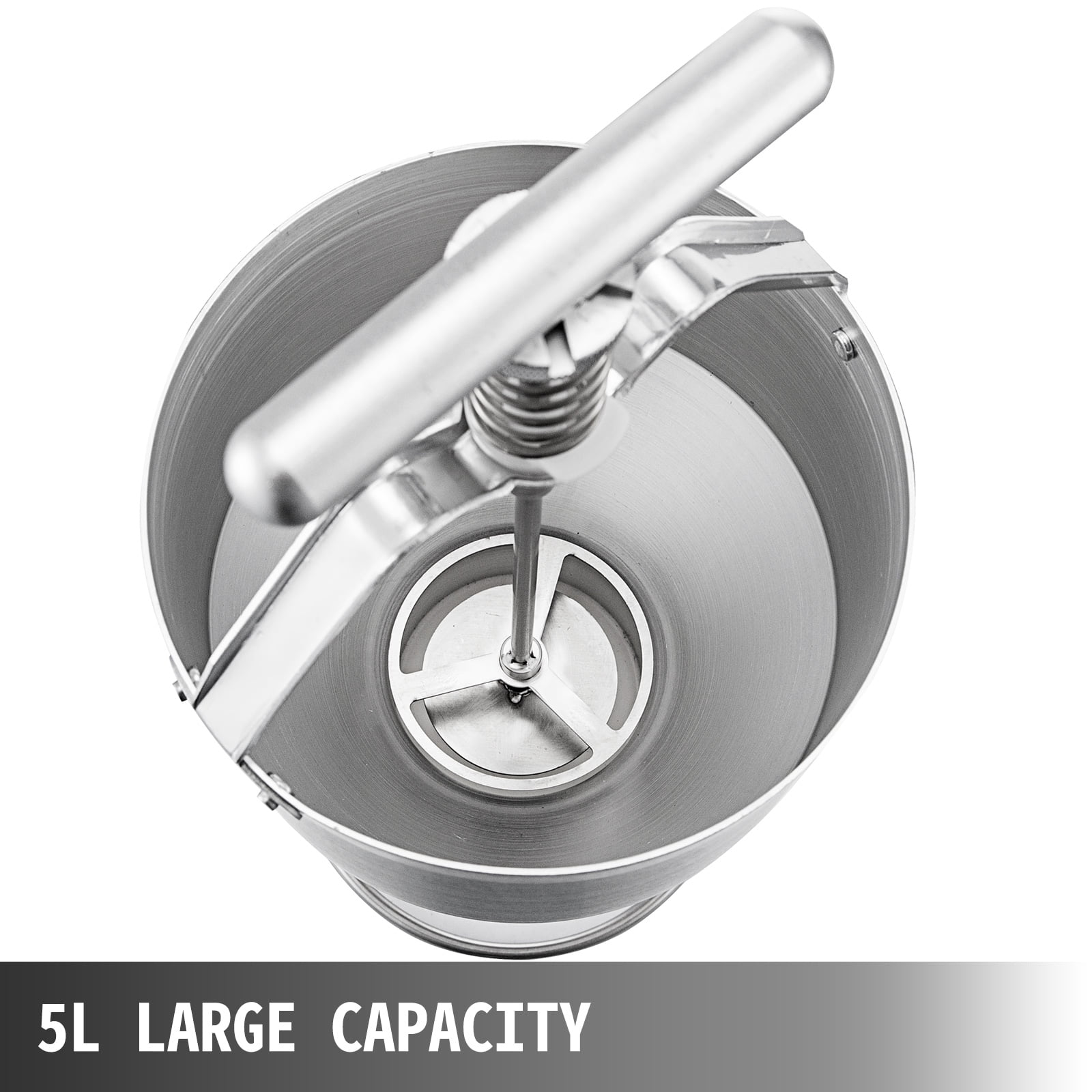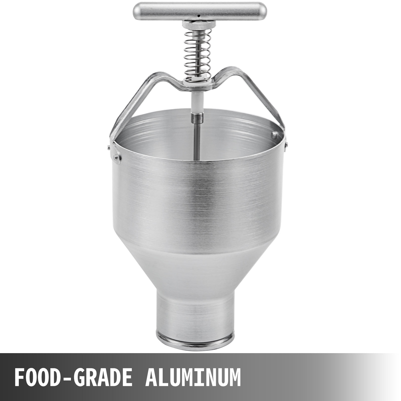Brand Introduction VEVOR is a leading brand that specializes in equipment and tools. Along with thousands of motivated employees,VEVOR is dedicated to providing our customers with tough equipment & tools at incredibly low prices. Today, VEVOR has occupied markets of more than 200 countries with 10 million plus global members. Why Choose VEVOR? 1.Tough Quality Assurance 2.Incredibly Low Prices 3.Fast & Secure Delivery 4.30-Day Free Returns 5.24/7 Professional Customer Service Product Description Manual Donut Depositor This manual donut dispenser is designed for you to make delicious donuts. It is ideal for perfectly shaped home-made donuts. The food-grade aluminum material ensures a sturdy structure and compact design. The integrated control bar allows the donut hopper to be operated with just one hand. It is suitable for both home and commercial use. Food-Grade Material This donut dropper is made of food-grade aluminum and stainless steel material, with a compact design. High temperature-resistant, and easy cleaning. 5L Large Capacity The doughnut dropper comes with a 5L hopper, able to hold a large amount of batter. Several donuts can be made at one loading. 6 Adjustable Thicknesses 6 levels are available, can be adjusted according to your own needs. Flexible and easy to master the thickness of donut molding. Integrated Control Bar Integrated control bar for easy operation with just one hand, featuring energy-saving spring, and high-quality portable handle. Convenient Stand Holder The stand holder design is convenient to store the donut dispenser. It can effectively prevent the batter from pouring out during operation, as well. Easy Donut-Making Simple and convenient donut-making operation. Widely used in restaurants, cafes, bakeries, home kitchens, etc. Suitable for both home and commercial use. Specifications Material: Food-grade Aluminum Capacity: 1.3 US gal (5L) Size of Donut: 2.0″-3.5″ (50-90 mm) Product Dimensions: 7.1″x7.1″x16.5″ (18x18x42cm) Net Weight: 2.2 lbs (1 kg) Package Content 1 x Donut Depositor 1 x Stand Holder 1 x Food Tong