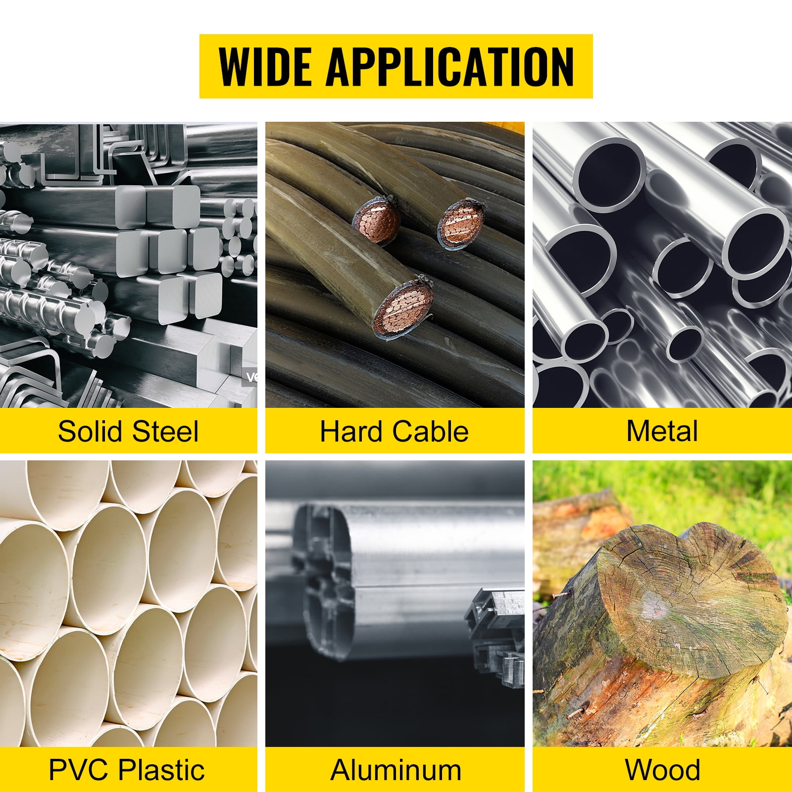 Brand Introduction VEVOR is a leading brand that specializes in equipment and tools. Along with thousands of motivated employees,VEVOR is dedicated to providing our customers with tough equipment & tools at incredibly low prices. Today, VEVOR has occupied markets of more than 200 countries with 10 million plus global members. Why Choose VEVOR? 1.Tough Quality Assurance 2.Incredibly Low Prices 3.Fast & Secure Delivery 4.30-Day Free Returns 5.24/7 Professional Customer Service Product Description 5 Inch Portable Band Saw The metal bandsaw features a powerful 10 amp motor with variable speed control for cutting unique materials and applications. Also, offering an LED sight indicates the cut line, ergonomic grip options, and an integrated hanging hook make your work easier. Fast & Smooth Cutting Maximum cutting capacity: without base: 127mm; with base: 100mm. Variable-speed dial, 137.8-472.4 feet per minute, for multiple materials and various applications 1100W Powerful Motor Industry superior 10 amp motor of the cordless band saw, designed with controlled power to withstand any jobsite application. User-friendly Design This saw band is designed with ergonomic handle, more labor-saving. LED lamp helps to operate in dim ambient. Adjustable blade guard to forestall jamming of saw blade. Removable Alloy Base The tool band can be rotated from 0-45°. It is easy to assemble. This workbench base can keep the cutting material from slipping, which is secure and convenient. Convenient to Operate Our handheld band saw is equipped with saw blade tightness switch. It only takes a few steps to replace the saw blade. It comes with two bi-metallic band saws for convenience using Wide Application It is widely used to cut stainless steel, aluminum, metal, iron, hard cable, wood, PVC, plastic, rubber, and other materials. Specifications Model: 5inMGCC1000-3 Voltage: 110 V/60 Hz/2.9 Amp Power: 1100W Cutting Size: 5 in/12.7 cm Cutting Speed: 137.8-472.4ft/min Material: Steel Adjustable Speed: Level 1-6 Distance Between Centers: 39.4 in/100 cm Length of Cable: 78.7 in/200 cm Item Size: 21.7″×6.7″×11.4″/55×17×29 cm Item Weight: 17.64lbs/8kg Package Content 1 x Band Saw 2 x Blade 3 x Hex Key