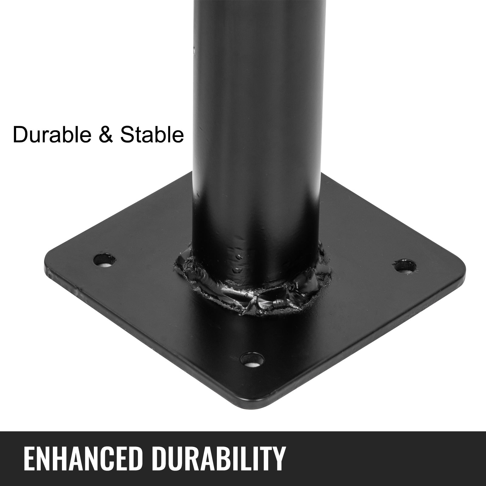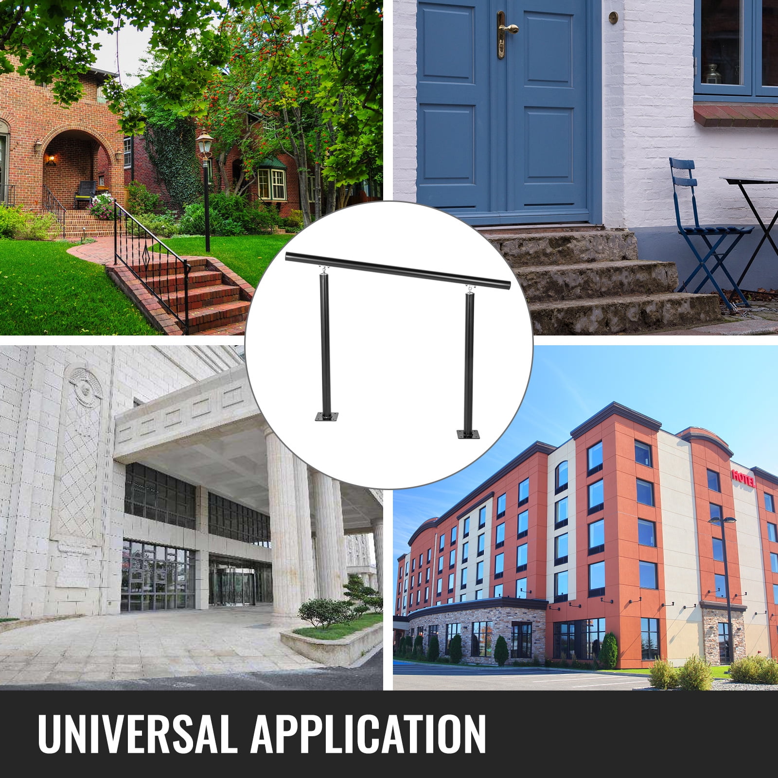 Brand Introduction VEVOR is a leading brand that specializes in equipment and tools. Along with thousands of motivated employees,VEVOR is dedicated to providing our customers with tough equipment & tools. Today, VEVOR has occupied markets of more than 200 countries with 10 million plus global members. Why Choose VEVOR? 1.Tough Quality Assurance 2.Fast & Secure Delivery 3.30-Day Free Returns 4.24/7 Professional Customer Service Product Description 34″ Black Outdoor Handrail The black outdoor handrail features an aluminum circular tube and iron base, which is rust-proof, wear-resistant, and rock-solid. It can be changed in a range of 0 to 60 degrees. The product can be widely used for home, office area, etc. The comprehensive set includes an internal hexagonal wrench and eight sets of M6 expansion bolts. Solid Construction The outdoor handrail is made from aluminum & iron material, which is water-proof, scratch-proof, anti-corrosion, and anti-rust. The circular tube has a diameter of 1.9 inches with a thickness of 2 mm. Transitional Handrail The universal stainless joint is designed to be used in flat or on an angle not exceeding 60 degrees. You can change appropriate angles as you need to fit different steps. Enhanced Durability The iron base is well-made and durable. Base Size: 5 x 5 x 1/4 inches; There are four holes to fix the handrail on the ground, making it more stable. Create a safe environment when going up or downstairs. Easy to Use It is hassle- to assemble according to the included instruction. The product with paint spraying can be cleaned easily by water. It also features high comfortableness to reduce your fatigue. Super Value Set The stair handrail is equipped with an internal hexagonal wrench and eight sets of M6 expansion bolts. The whole kit of accessories can help you finish the installation quickly. Universal Application The design of the handrail is beautiful and stylish. It is suitable for the needs of different outdoor and indoor scenes. It can be used to decorate an outdoor garden, residential building, company, hotel, etc. Specifications Color: Black Material: Aluminum/Iron Item Length: 4 ft/121.9 cm Height: 34″/86.4 cm Range: 0~60 degrees Tube Thickness: 2 mm Tube Diameter: 1.9″/4.8 cm Item Weight: 6.2 lbs/2.8 kg Package Content 1 x Black Handrail 8 x M6 Expansion Bolt 1 x Internal Hexagonal Wrench 1 x User Manual