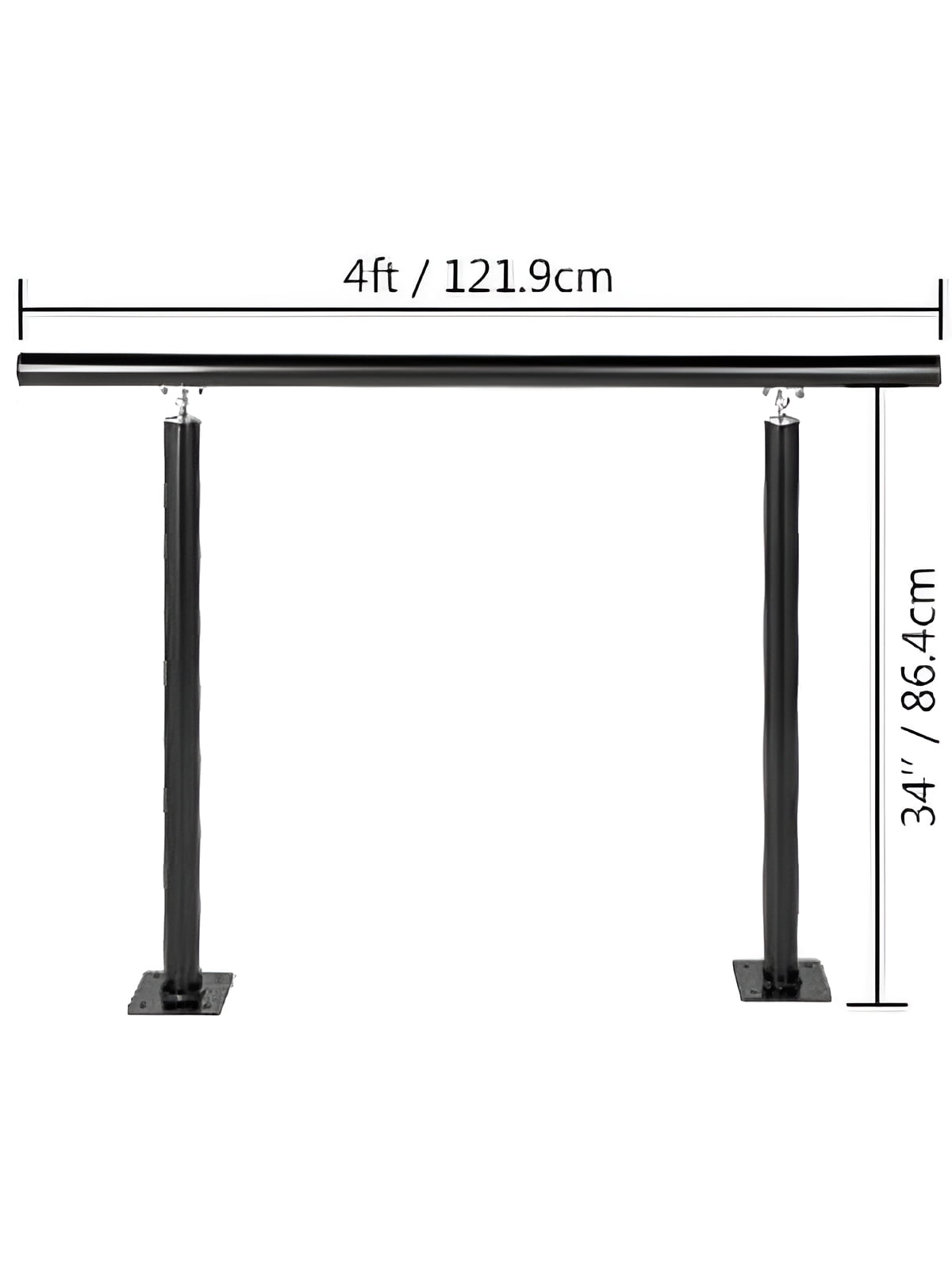 ãPREMIUM QUALITY MATERIALã- Length: 4 ft; Height: 34″; The black outdoor handrail is constructed with an aluminum circular tube and iron base for wear-resistant. It applies unfading baking varnish on the surface to protect your hands from scraping. ãFLEXIBLE UNIVERSAL JOINTã- The universal stainless joint of the outdoor stair railing is flexible. It is changeable in the range of 0 to 60 degrees for installation on different steps. ãEASY TO USE & CLEANã- The outdoor railing for steps is easy to assemble by some simple procedures. Also, the handrail for outdoor steps can be cleaned by using a towel or rag without maintenance. ãCOMPREHENSIVE SETã- Comes with accessories to give you more convenient, such as an internal hexagonal wrench and eight sets of M6 expansion bolts. It is trouble-free to conduct the installation process. ãWIDE APPLICATIONã- The stair handrail is not easy to be damaged, even exposing the weather. It is very appropriate for exterior and interior applications like an outdoor garden, backyard, and office work area. Solid Construction|Transitional Handrail|Enhanced Durability|Easy to Use|Universal Application