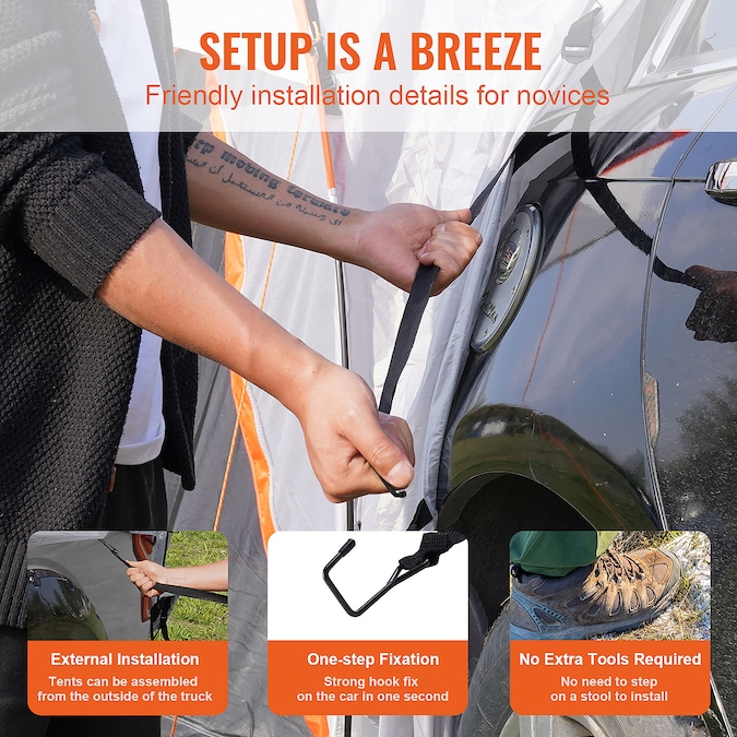 - Compatible with Various Vehicles: Are you ready to get more out of your SUV; The VEVOR SUV camping tent can be installed on hatchbacks or used as a stand-alone tent; It’s suitable for SUVs, minivans, crossovers, Wagons, Jeep Wrangler Hard Top, or pick-up trucks with bed caps; This tent lets you turn your vehicle into a mobile “home” and enjoy outdoor camping fun