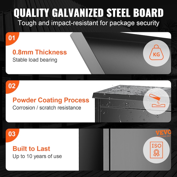 - Highly Durable: The package delivery boxes for outside are constructed from 0.8mm thick galvanized steel, and features a specialized coating through a spray process to prevent rust and scratches; Long-lasting lifespan of up to 10 years;