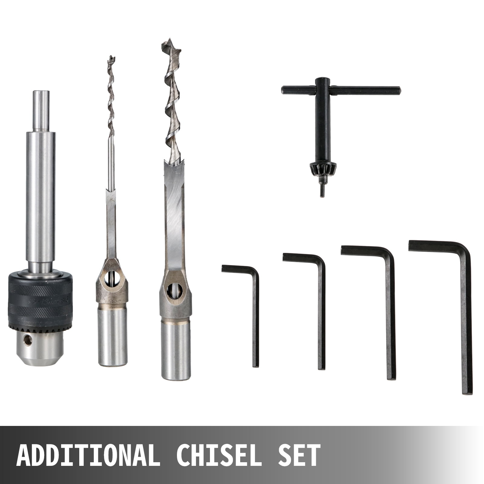 VEVOR Woodworking Mortise Machine, 3/4 HP 3400RPM Powermatic Mortiser With Chisel Bit Sets, Benchtop Mortising Machine, For Making Round Holes Square Holes, Or Special Square Holes In Wood
