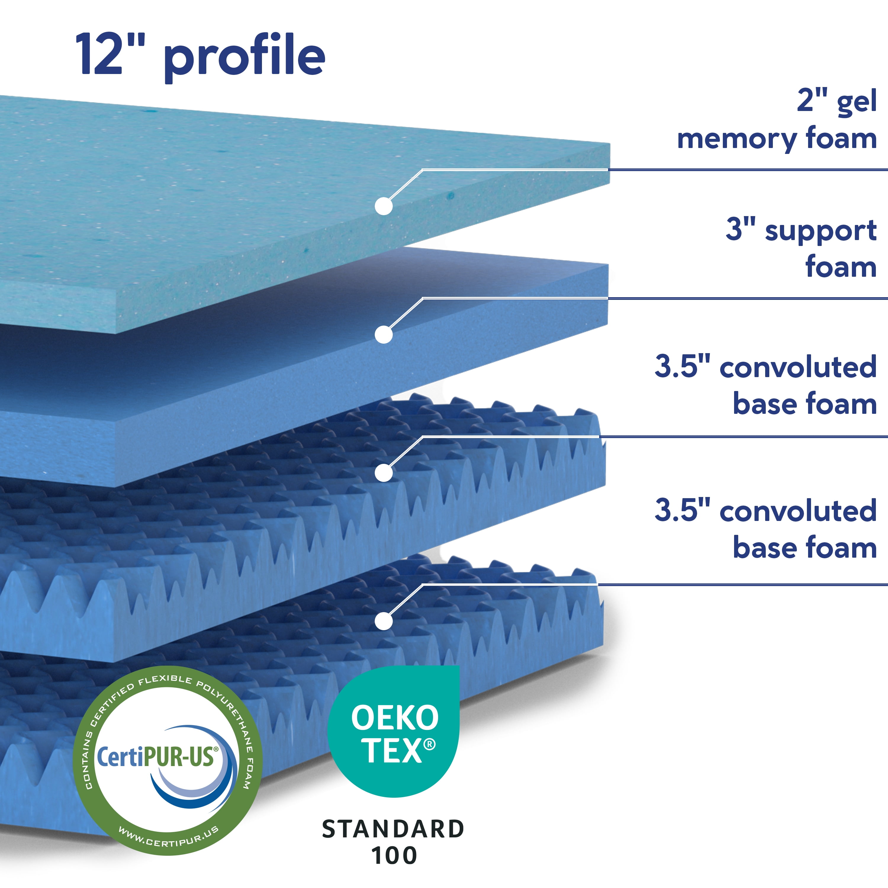 General Note: Please allow 24 – 72 hours for your Mattress to regain its full shape. Any memory foam will expand faster in a warmer room. In cold temperature, at delivery, your mattress may take a bit longer to return to full sized from its compressed state.The expansion time of the mattress will vary as per the surrounding. 39″ W x 80″ L x 12″ H. 2 inches of gel-infused memory foam combined 3 inches of gel-infused foam draws heat away from your body for a more comfortable night’s sleep 7 inches of conforming high-density base foam provides surrounding support and responsive relief that helps evenly distribute pressure points in any sleeping position Luxurious stretch knit quilted fiber cover Medium-Plush Feel and Adjustable Base Friendly High-quality memory foam conforms to your body while the cool gel regulates body temperature; our memory foam uses a porous, open cell design that allows for a greater circulation and meets CertiPUR-US program standards for performance, emissions, and durability Mattress ships compressed, rolled and shipped in a box conveniently delivered to your door for easy set-up; frame/foundation/base not included
