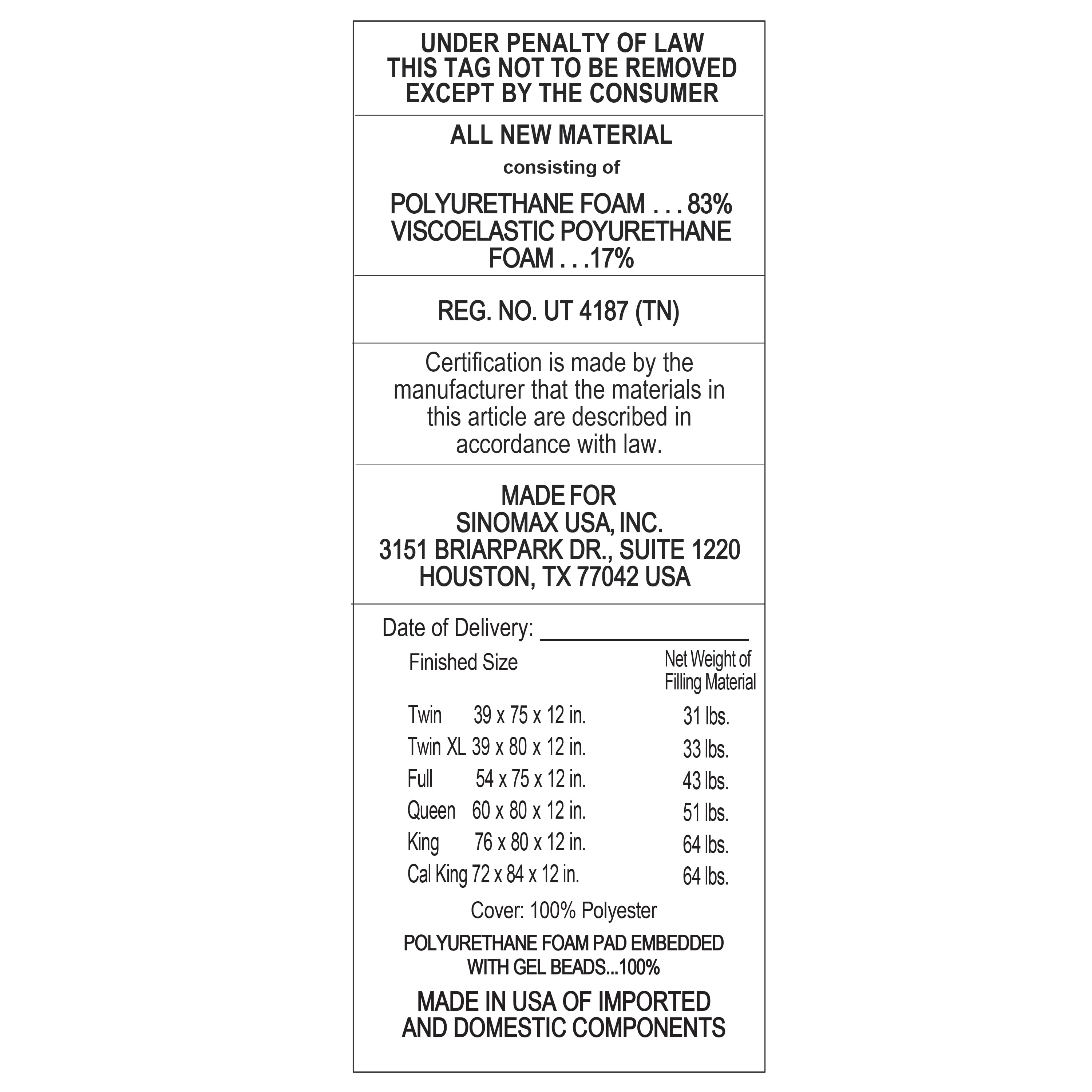Good mornings, good feelings, good times, good Vibe. The Vibe 12-inch Gel Memory Foam Mattress combines two leading sleep technologies at an incredible value. Gel-infused memory foam keeps you cool during sleep and body-contouring memory foam reduces pressure points and properly aligns the spine. Gel draws heat away from the body and creates a cooler sleep surface and aids in preventing excessive tossing and turning so you can get a more restful night’s sleep. The feel of this gel memory foam mattress is slightly plusher than a traditional firm mattress. Why Choose Vibe The Vibe mattress is comprised of gel memory foam which supports every part of the body evenly and individually. Gel Memory foam automatically adjusts to your body’s weight and temperature. In addition to the slow, conforming response, Vibe offers complete, luxurious, and stress-free support. This can reduce pressure points and allow the spine to stay properly aligned in a neutral position. When you move in bed, memory foam gently ‘fills in’ and reshapes itself to your new sleeping posture and minimizes motion disturbance and transfers between partners. Benefits of Gel Memory Foam The latest technology in gel memory foam mattress, this mattress is conforming, comfortable, and comes complete. A combination of 2 inches of gel memory foam with 3 inches of gel comfort foam provides the ultimate in breathability and heat displacement while 7 inches of high-density base foam beneath offers maximum support, pressure point relief, and proper spinal alignment. All this surrounded by a luxurious stretch knit cover, you may never want to leave your bed. Low-Cost Quality Solution for Good Sleep The Vibe Mattress is a low-cost solution to more expensive branded memory foam beds and is a smart alternative without sacrificing quality, comfort, or support. Get it Right the First Time It is also a good idea to know the size and the height of your mattress ahead of time to make sure you are ordering the correct size. Keep in mind that you should combine the height of your bed frame, foundation, or adjustable bed base with the height of your mattress to get a gauge of the how tall your sleep system will be. Twin Size – 39″ W x 75″ L x 12″ H Twin XL Size – 39″ W x 80″ L x 12″ H Full Size – 54″ W x 75″ L x 12″ H Queen Size – 60″ W x 80″ L x 12″ H King Size – 76″ W x 80″ L x 12″ H California King Size – 72″ W x 84″ L x 12″ H A Good Vibe Shipped to your Door The Vibe Mattress ships compressed and roll-packed conveniently to your home. Set-up is easy, and you can sleep on it the same night. Vibe also uses Smart Packaging. Smart packaging reduces the carbon footprint in the manufacturers shipping process. Our advanced packaging technology means we can roll-pack our mattresses and ship them at one-third of the normal size. As a result of this process, we can ship more mattresses per delivery and reduce the amount of carbon emissions. A mattress that is roll-packed still retains its initial quality, as each will quickly recover and return to its original shape after being removed from its packaging. Buy With Confidence The Vibe mattress s backed up by a 10-Year Manufacturer’s Limited and is made using premium materials and skilled craftsmanship.
