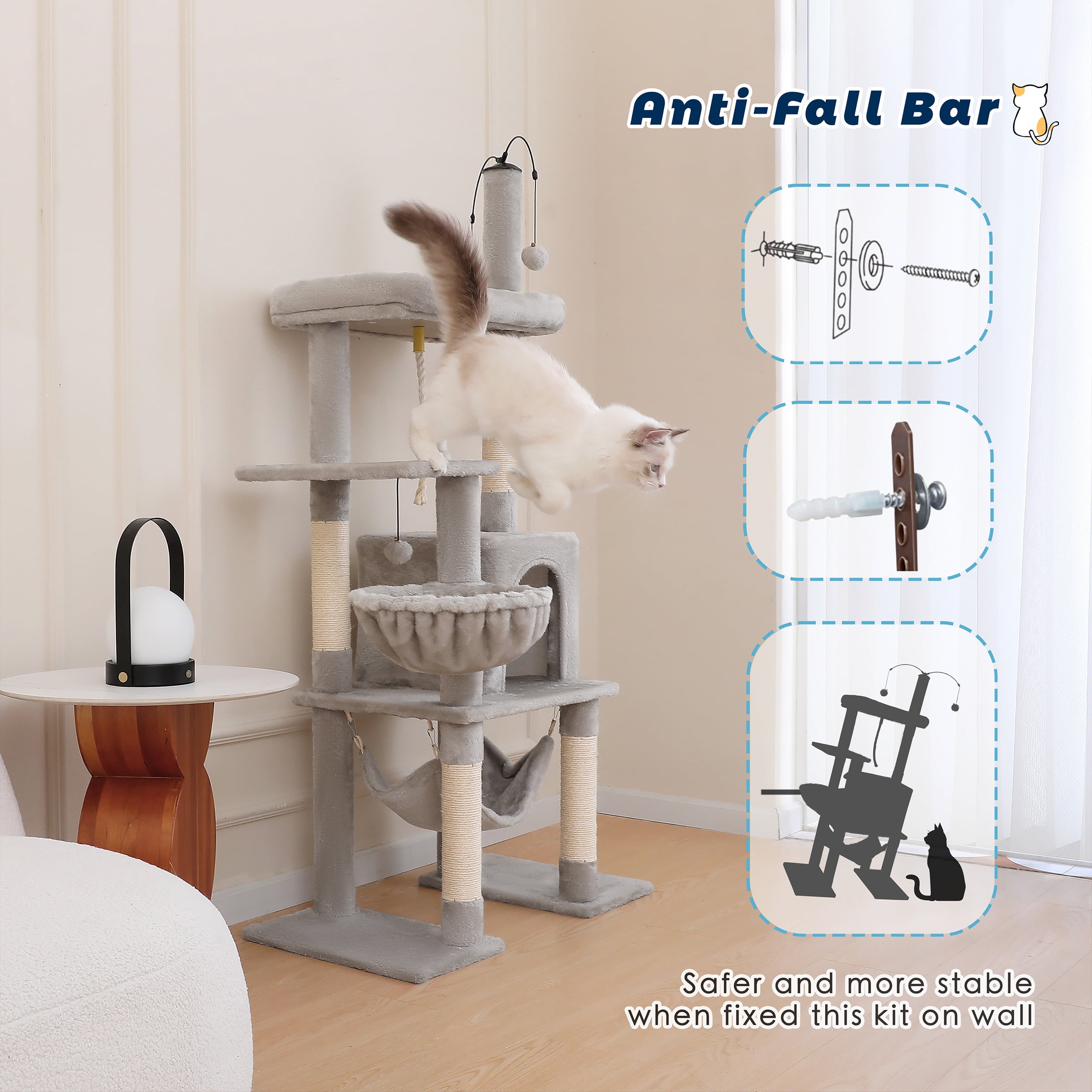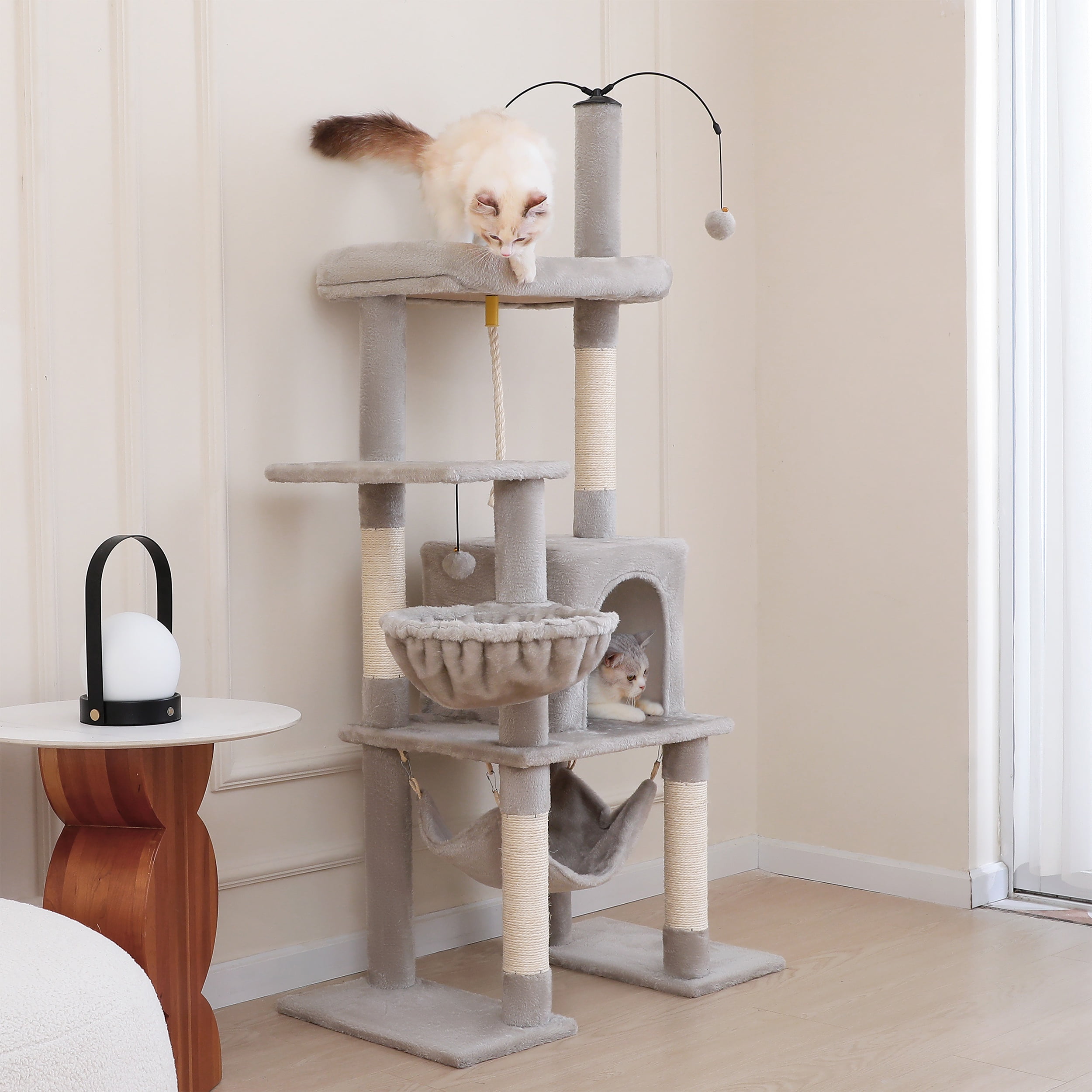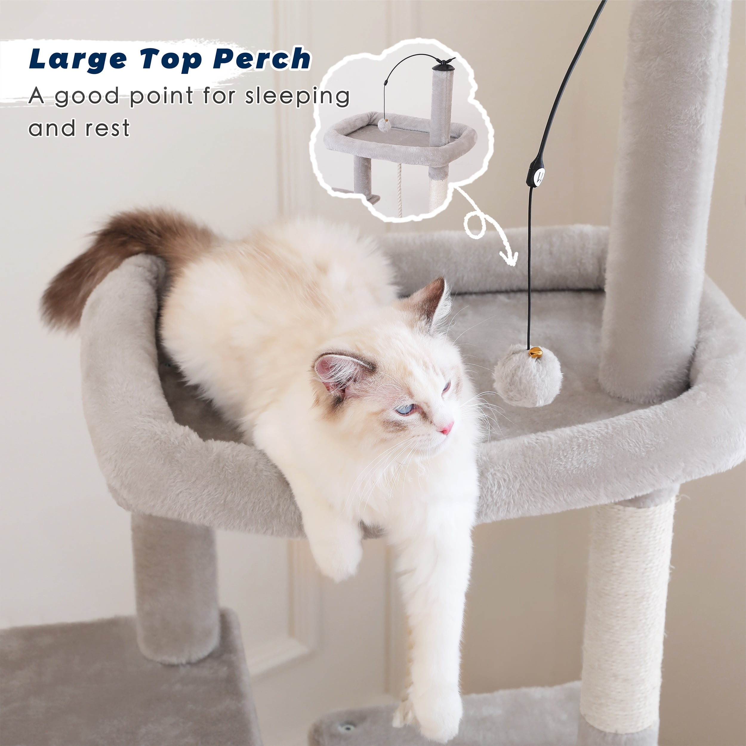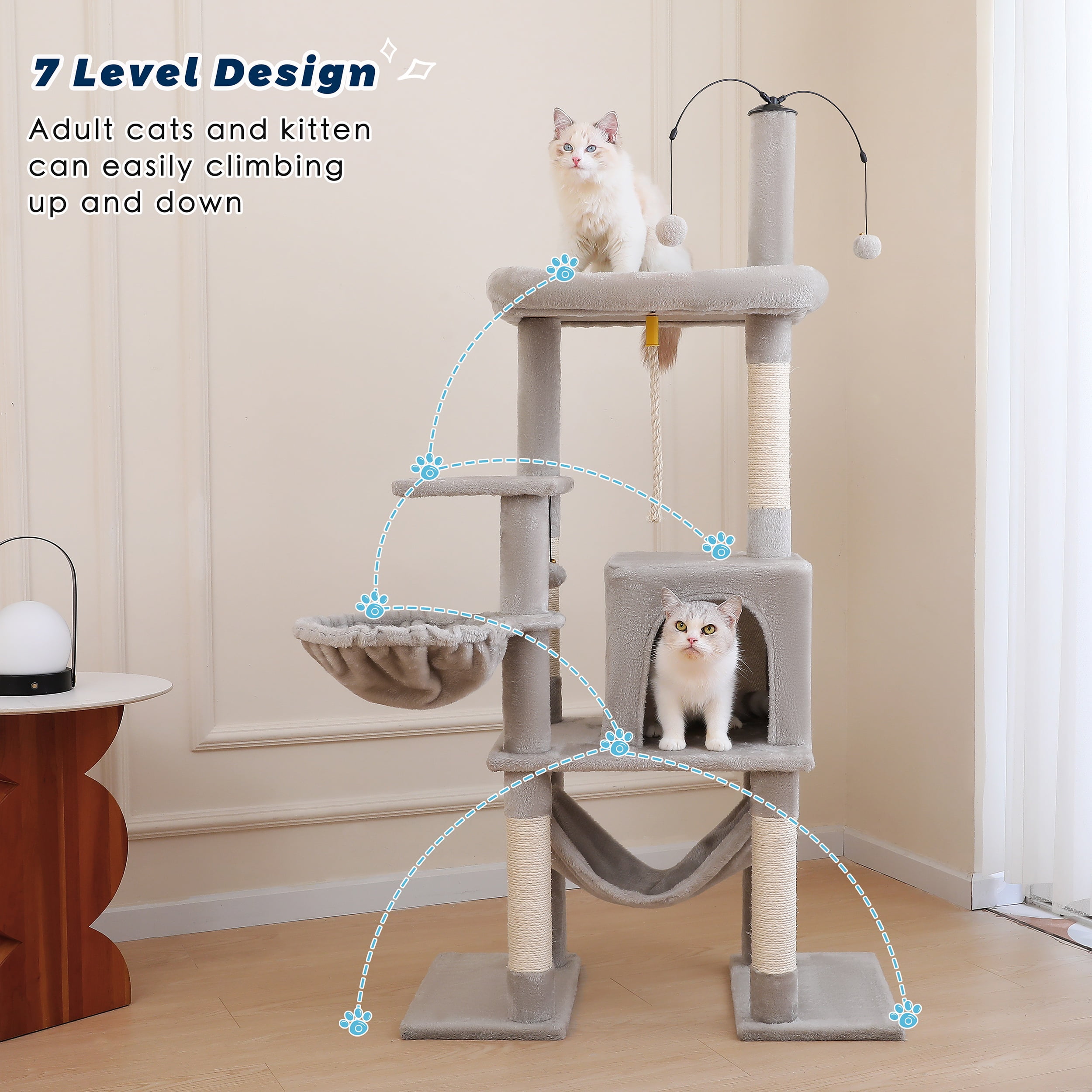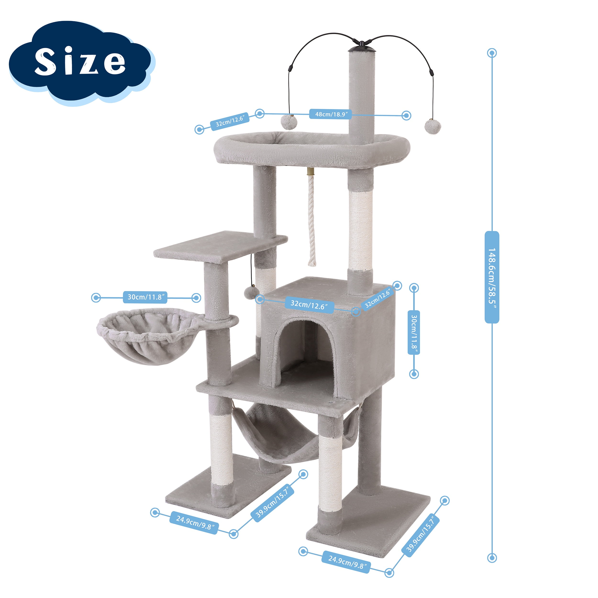 Vibrant Life 58.5inch Multi Level Cat Tree Tower with Interactive Dangling Ball and Double Base,Light Gray