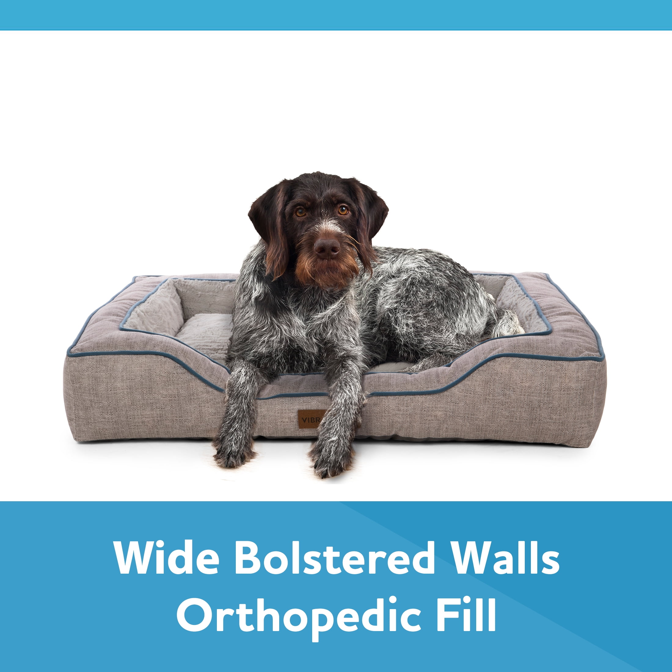 PROVIDES FULL BODY SUPPORT with wide bolstered walls and orthopedic fill EASY TO ENTER AND EXIT with lowered front entry, great for pets of all ages IDEAL FOR MULTIPLE SLEEP POSITIONS with a large sleep cushion, pets can sleep stretched-out or curled up