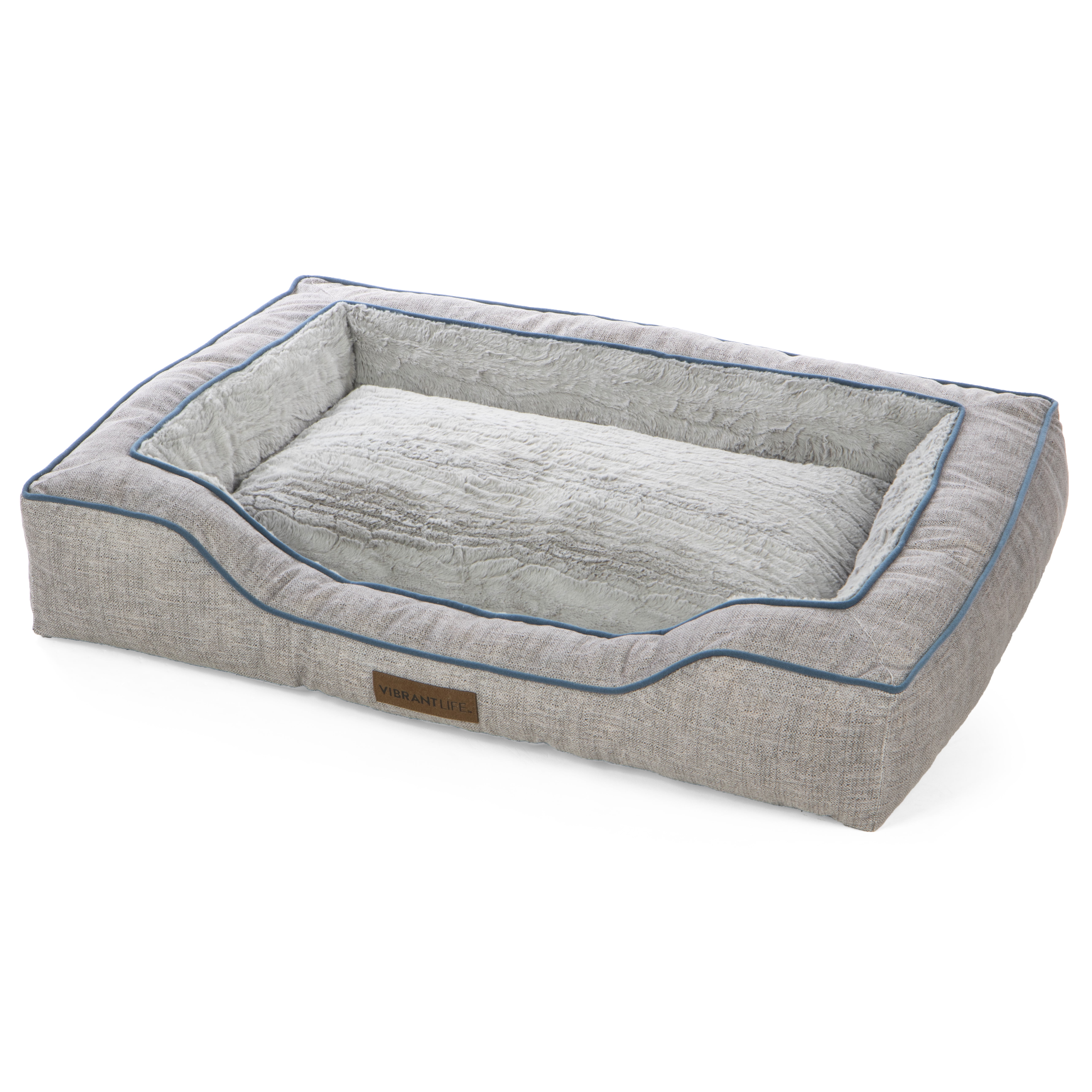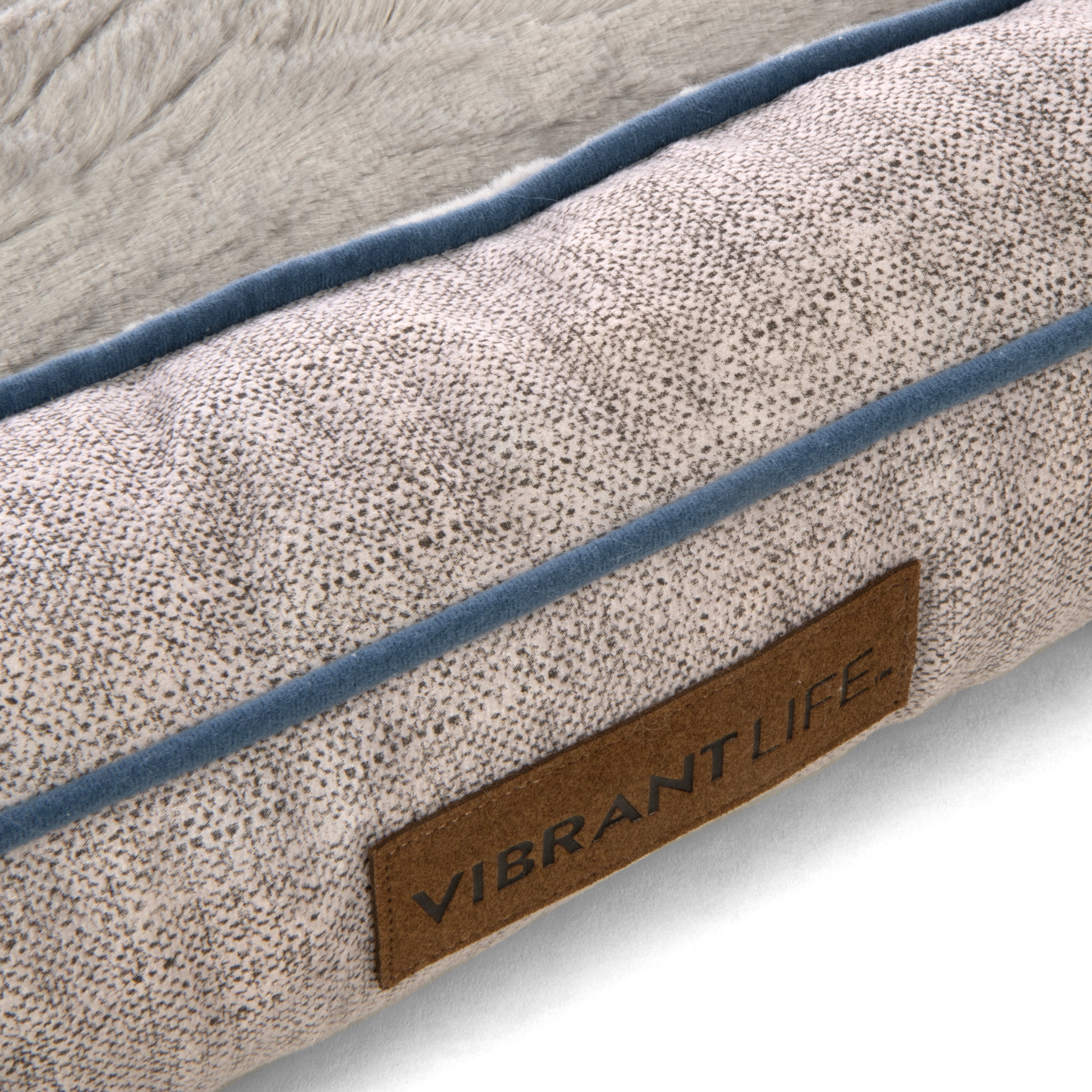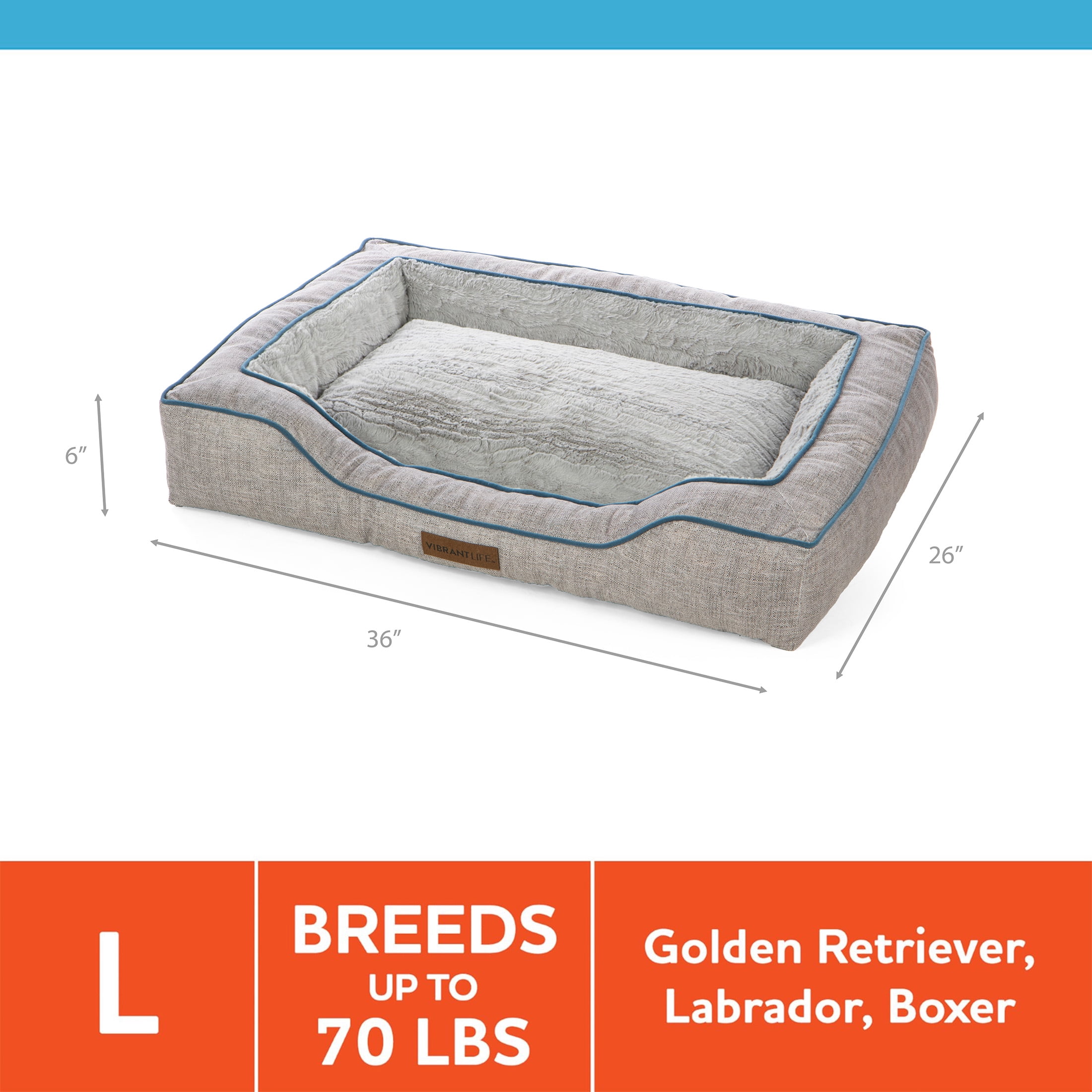 Vibrant Life™ Bolstered Bliss Mattress Edition™ is a large deluxe dog bed containing high performance human-grade mattress materials, wide, bolstered walls and large sleep surface ideal for multiple sleep positions and full body support. With a lowered front entrance, allowing for easy entry and exit, it is an ideal pet bed for dogs of all ages and multiple pet families. A comfortable pet bed for restful sleep or a lounge area in the home, crate, or car. Comes in a home décor friendly fabric. Sizing: 36 inches x 26 inches x 6 inches. Ideal for large pets, up to 70 lbs Mattress Edition™ pet beds are part of ‘s Closed Loop Program, and contain recycled human-grade mattress materials and post-consumer recycled fibers, keeping thousands of mattresses from landfills annually and providing premium support and comfort for pets of all ages and sizes. Vibrant Life™ Bolstered Bliss Mattress Edition™ pet bed keeps the equivalent of two hundred 16.9 oz plastic water bottles from our environment, doing our part one pet bed at a time.