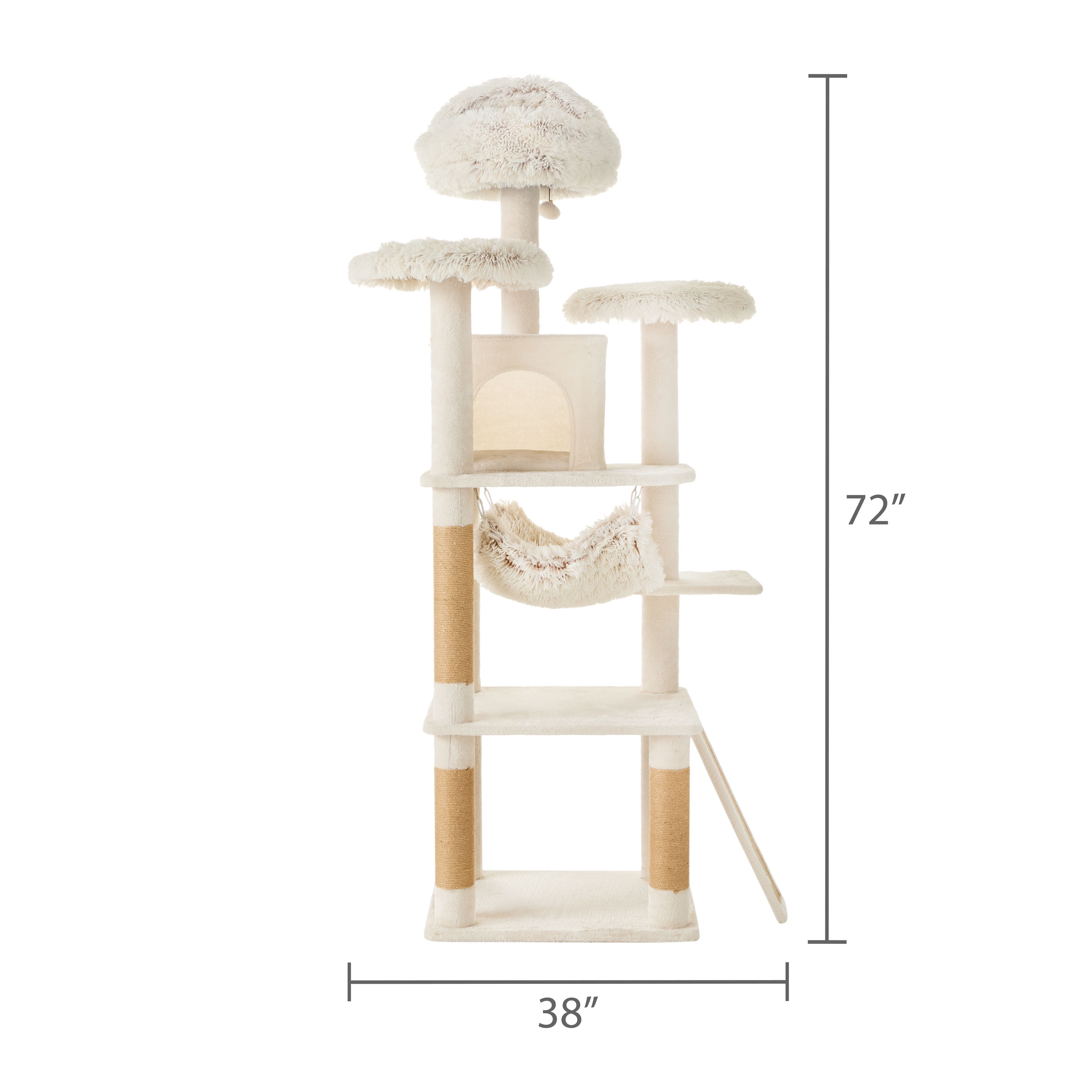 Vibrant Life 73″ Large Multi-Functional Cat Tree with Condo, Hammock and Scratching Posts, Beige