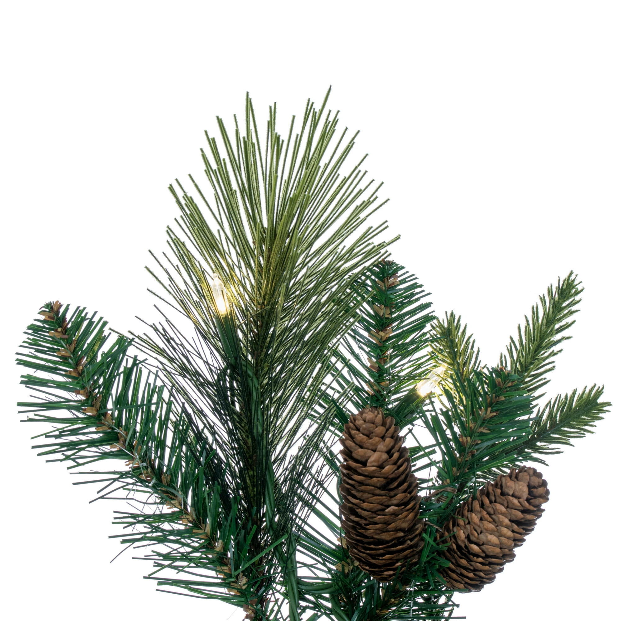 Prelit with 100 Warm White LED Dura-lit Mini Lights Dura-lit Lights utilizes microchips in each socket so bulbs stay lit even when some bulbs are broken or missing Utilizes energy-efficient, durable LED technology Pine Cone Accents