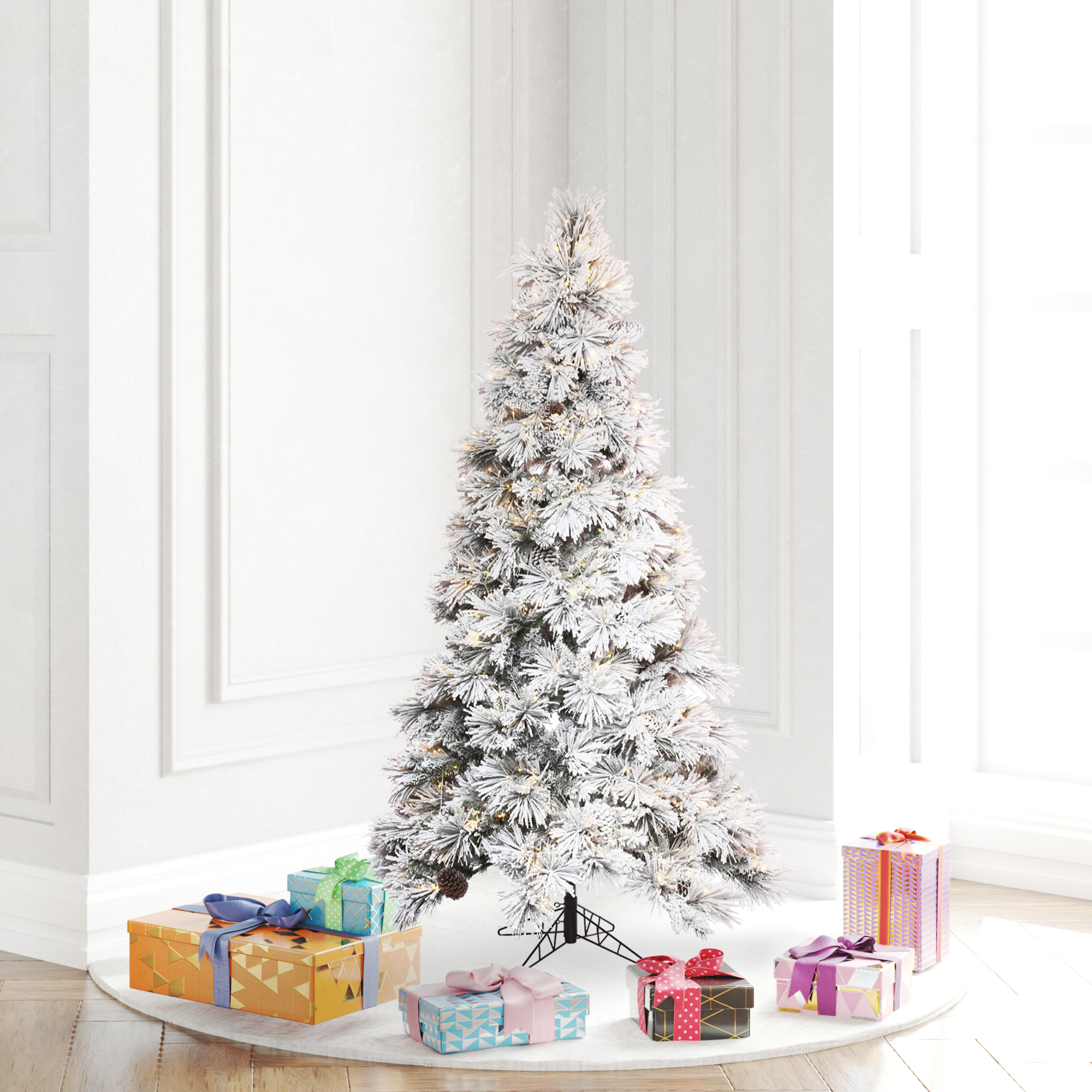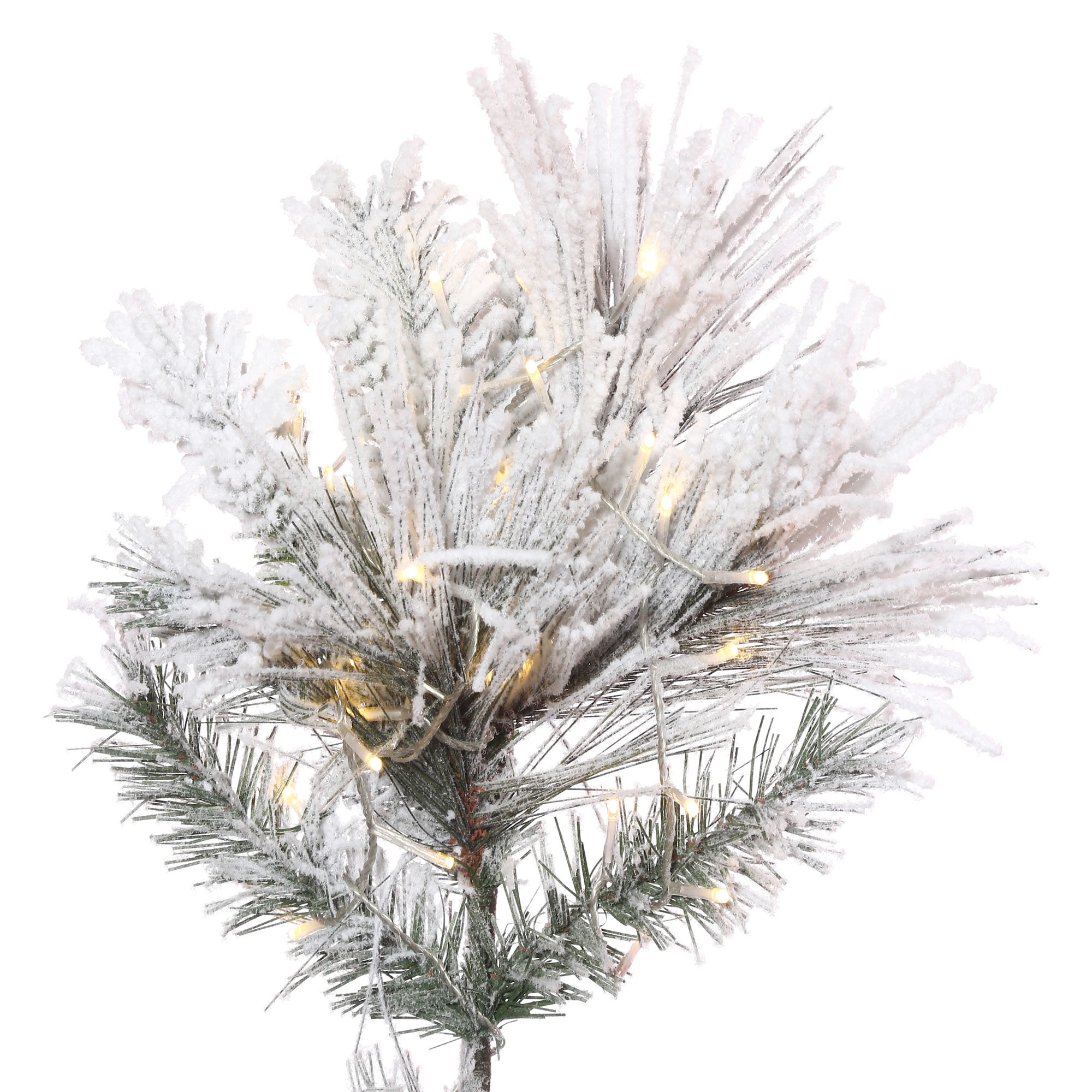 Flocked features, this tree comes with the medium flocking of a fresh snowfall. Convenient prelit energy efficient and durable LED technology, featuring 400 warm white lights Easy assembly – Includes a metal tree stand for easy assembly. Shop with confidence knowing that Vickerman has been designing quality home decor since 1940. Our expert designers focus on every detail to create artificial plants that look natural.