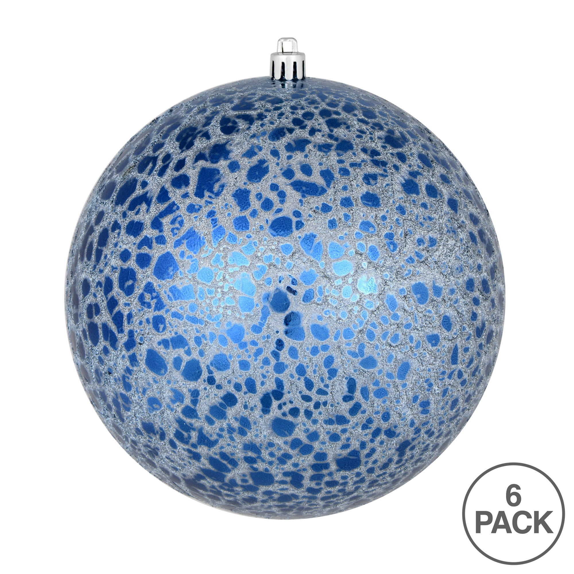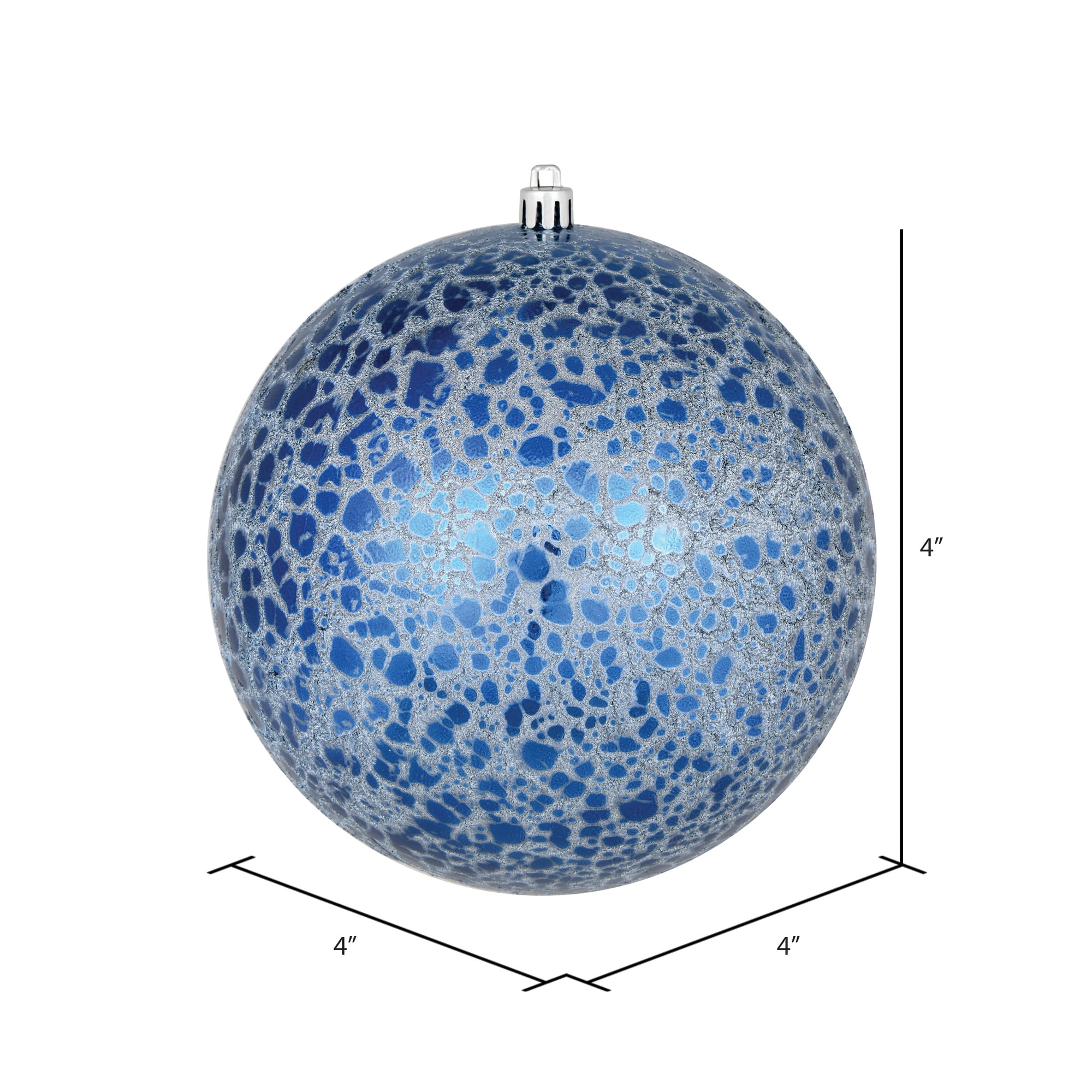 Vickerman 4″ Midnight Blue Crackle Ball Ornament. This ornament has a rough crackled finish that adds texture to any holiday decorating project and features a drilled and wired secure cap for reliable hanging. This unique ornament is an exceptional addition to any collection as it matches well with a variety of décor and goes perfectly on a holiday tree or in a decorative bowl. Includes 6 ornaments per bag.