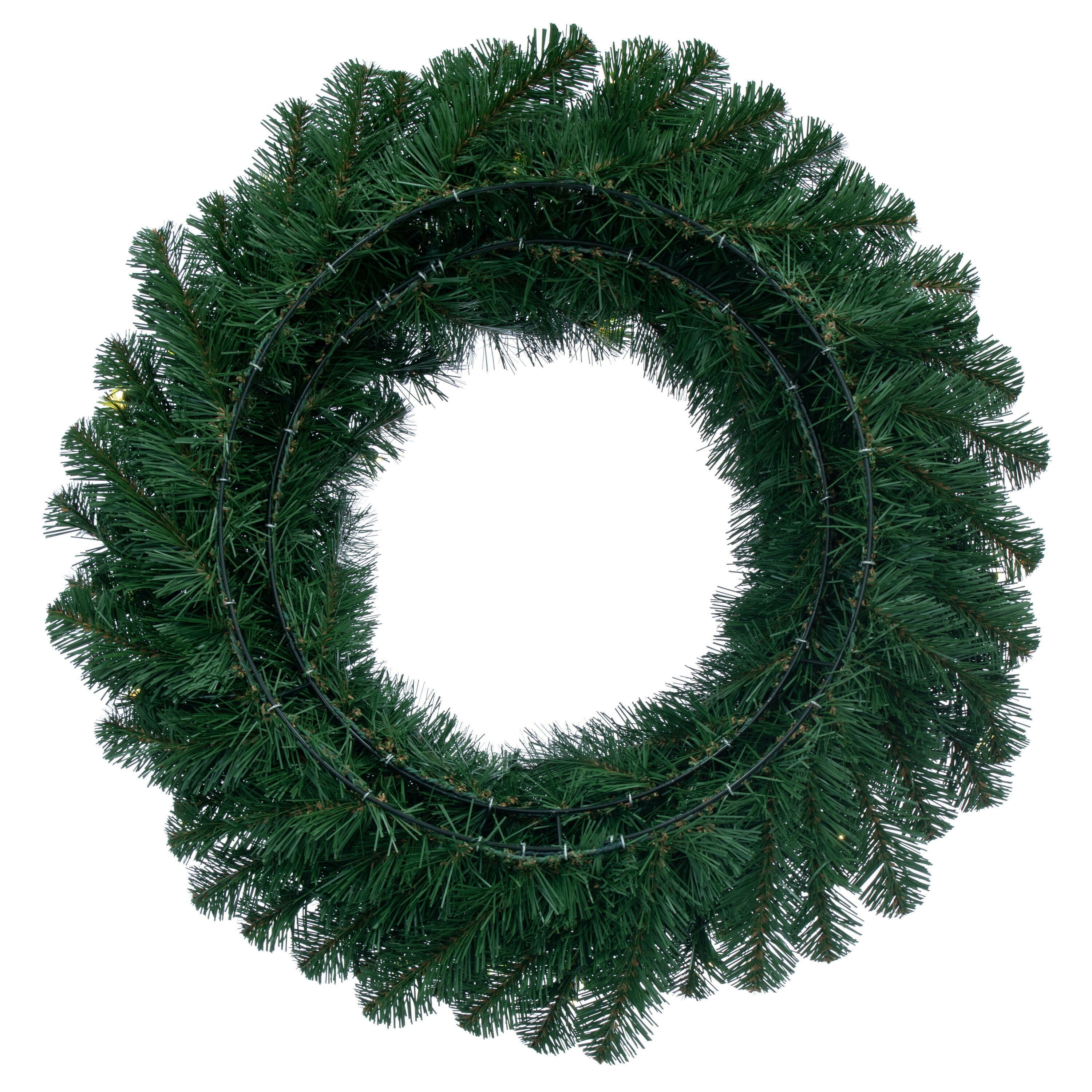 Vickerman 48″ Oregon Fir Artificial Christmas Wreath featuring 300 PVC tips and 200 Warm White single mold LED wide angle lights. Add some holiday spirit to your front door or mantle with this beautiful green wreath. This wreath comes Prelit with Warm White Single Mold LED Mini Lights that run on 120V AC, features traditional PVC tips, giving a lush, full look, and can be customized with your favorite ornaments, ribbons, or Holiday picks. The wreath measures 48″ across the diameter from the end of one tip to another, inner diameter 30.5″. Metal ring construction. Assembly required; hardware is included.