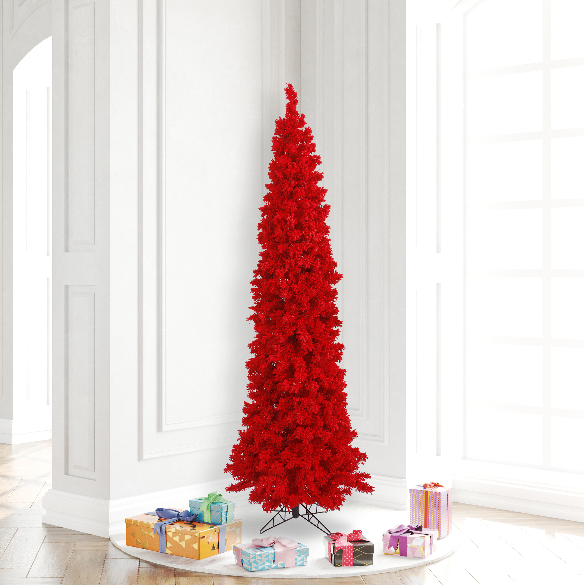 Vickerman 6.5′ Flocked Red Pencil Fir Artificial Christmas Tree, Unlit