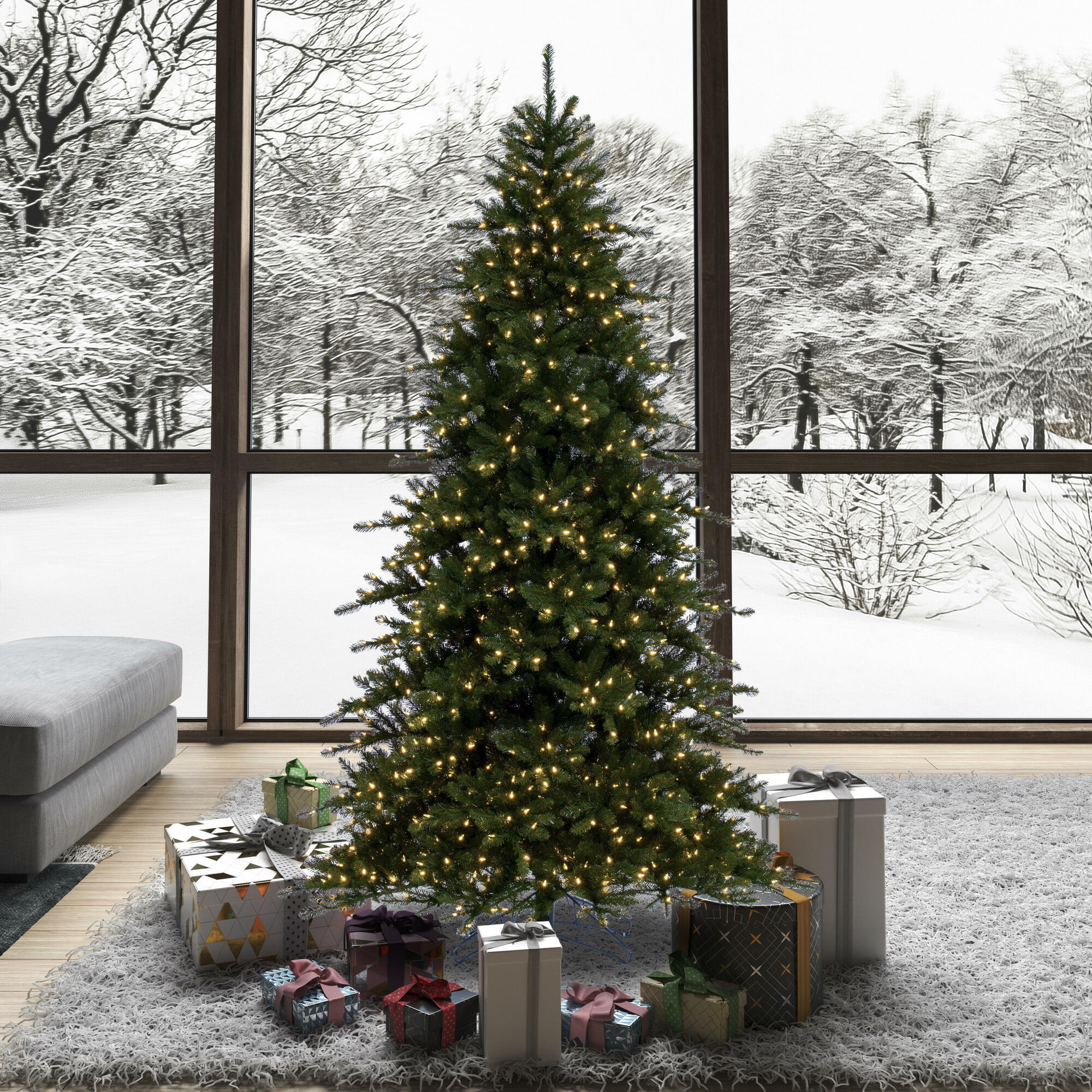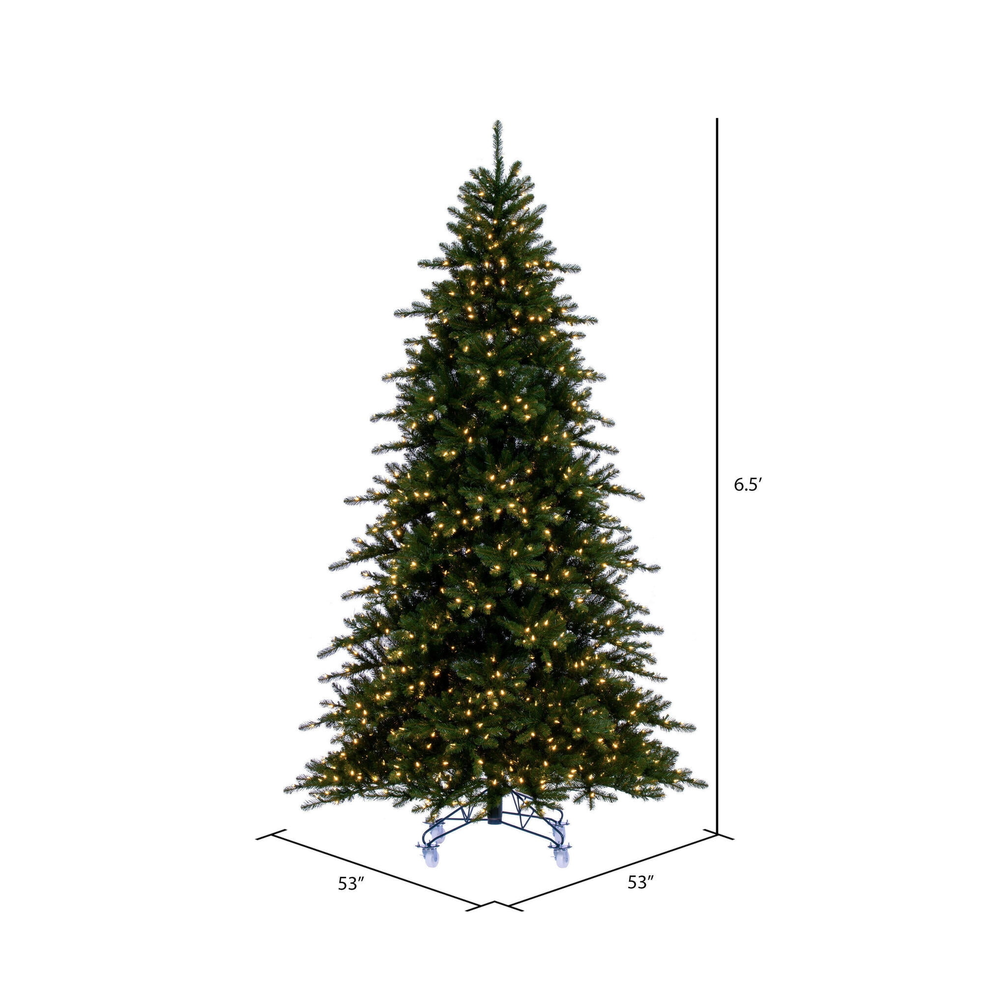 Vickerman 6.5′ x 53″ Bavarian Pine Artificial Pre-Lit Christmas Tree, Warm White Lights.