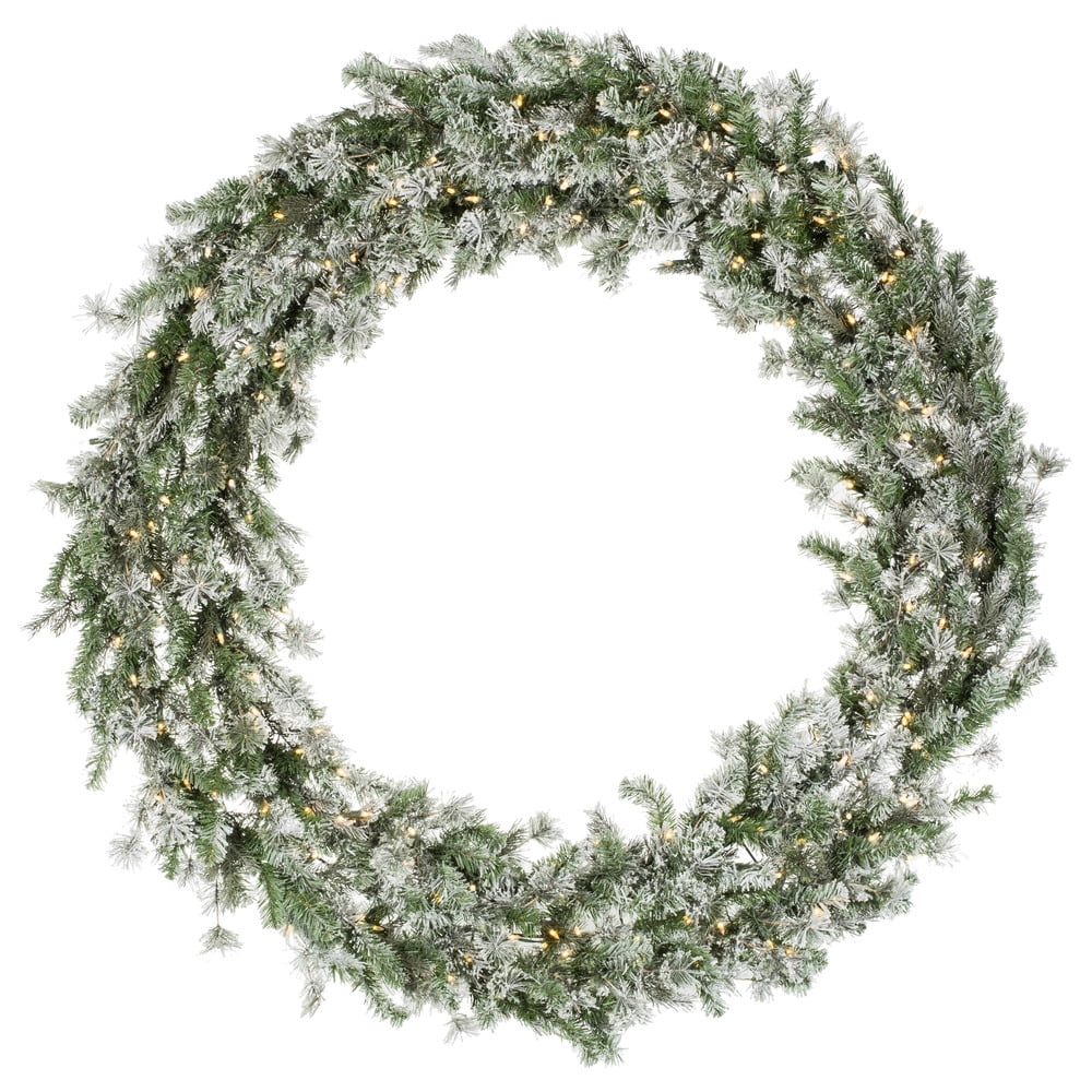 Vickerman 60″ Flocked Kiana Artificial Christmas Wreath with 660 PE/PVC/Hardneedle Tips and 200 UL Dura-Lit® LED Warm White Mini Lights, lightly flocked. Incorporate bright and modern holiday décor into your space with this beautiful wreath. A great accent for your front door or mantle, this wreath comes prelit with Warm White Dura-lit LED Mini lights that run on 120V AC, and features a beautifully flocked blend of PE, PVC and Hardneedle tips. The wreath measures 60″ across the diameter from the end of one tip to another. This wreath can be used just as it is, or customize it with your favorite ornaments, ribbons, or Holiday picks. For additional complimentary accents see the many garlands and trees available from Vickerman. This decorative wreath is maintenance free and will suit any decor. Vickerman has been an industry leader since 1940. Enjoy this expert designed seasonal wreath around your home.