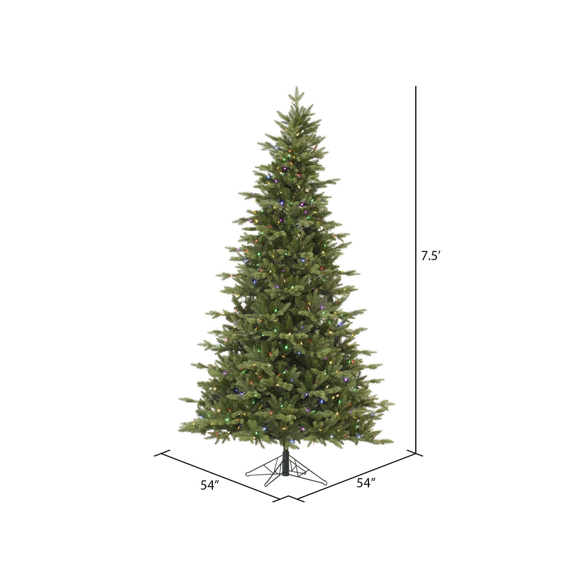Complement your holiday decor with a long lasting Balsam Fir christmas tree. Comes prelit with 750 Multi-colored Dura-lit LED Lights Dura-lit lights utilize microchips so bulbs stay lit even when some Bulbs are broken or missing. Shop with confidence knowing that Vickerman has been designing quality home decor since 1940. Our expert designers focus on every detail to create artificial plants that look natural. Features Metal Hinged Branches, a Convenient On/Off Step Switch and a Metal Tree Stand is Included