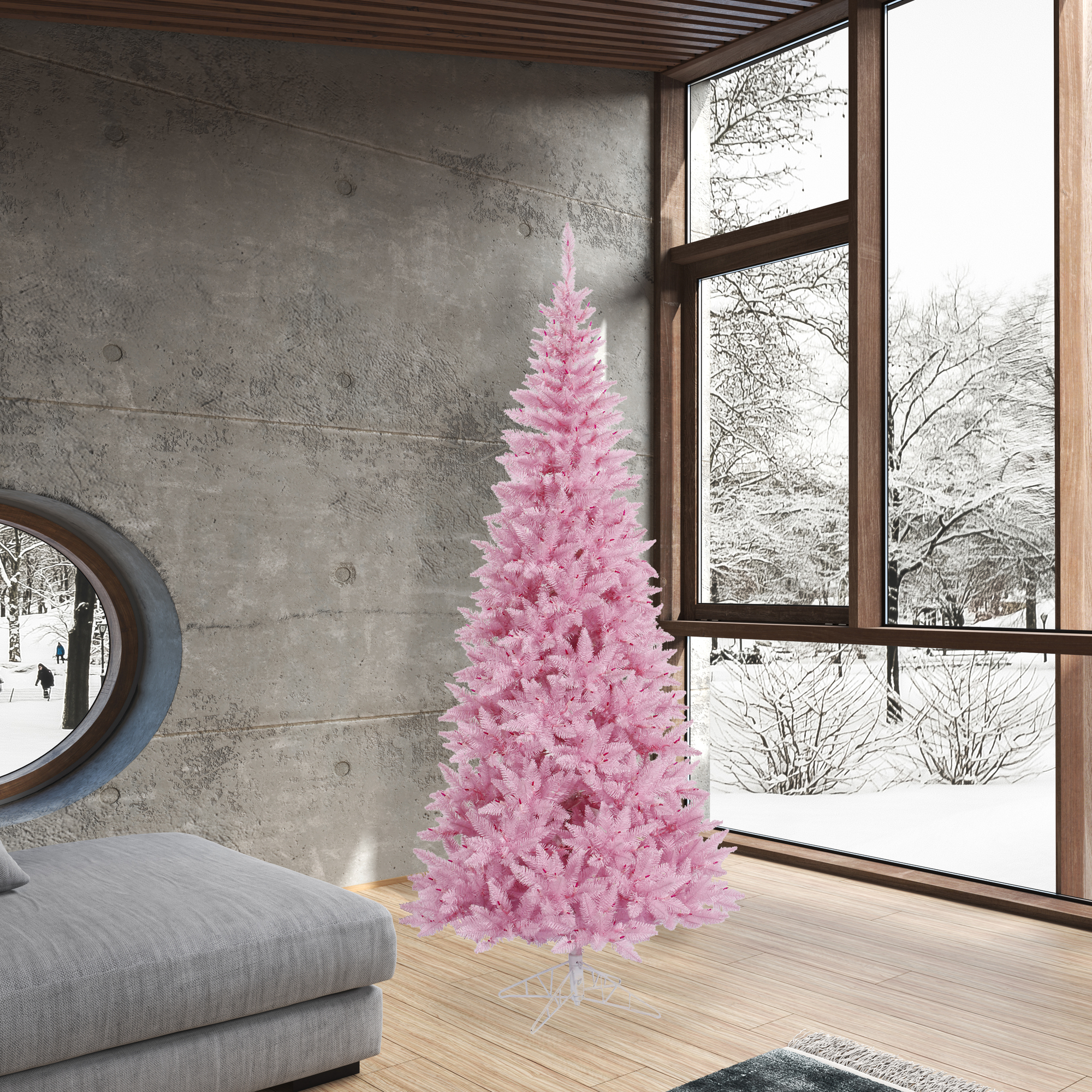 Vickerman 7.5′ Pink Fir Slim Artificial Christmas Tree, Unlit