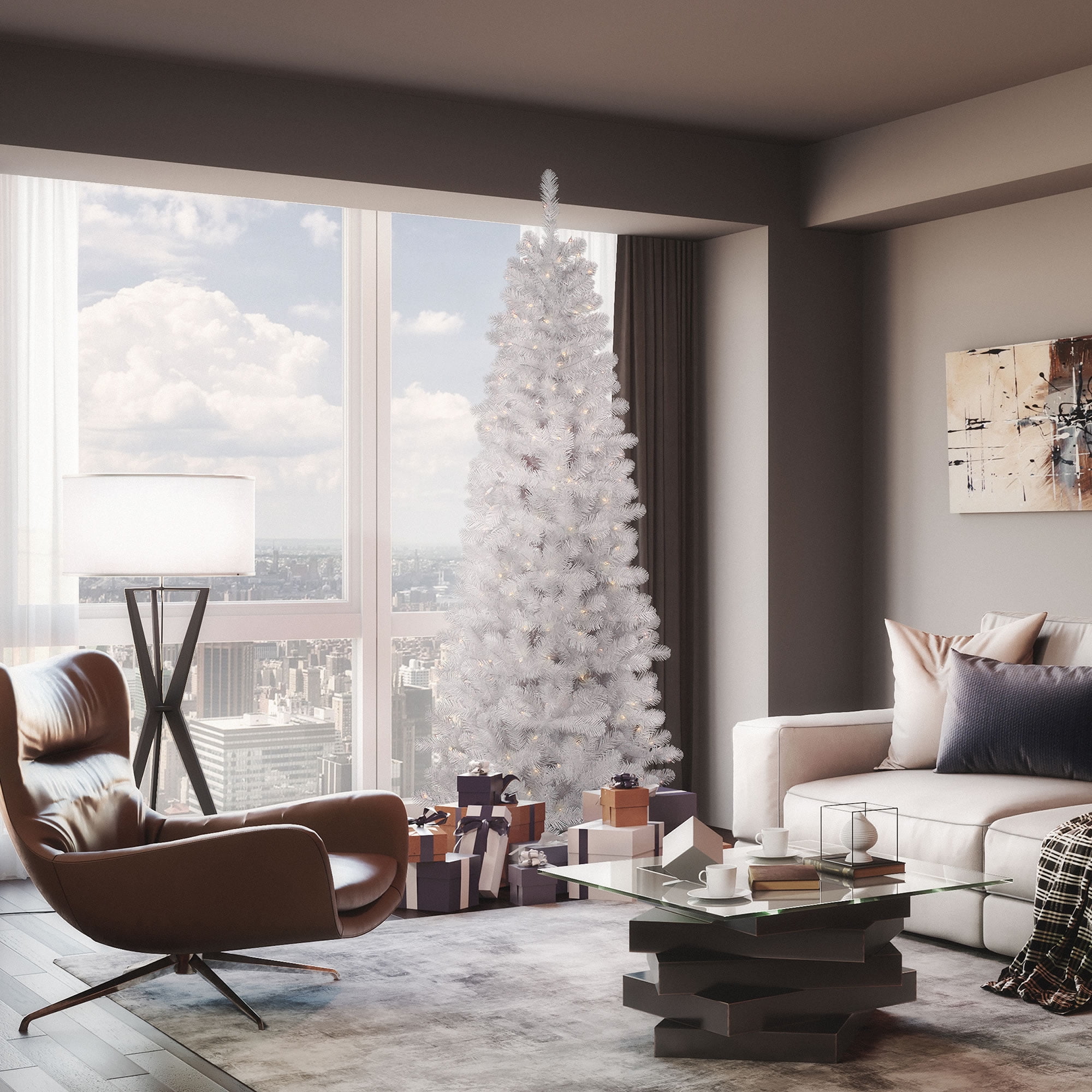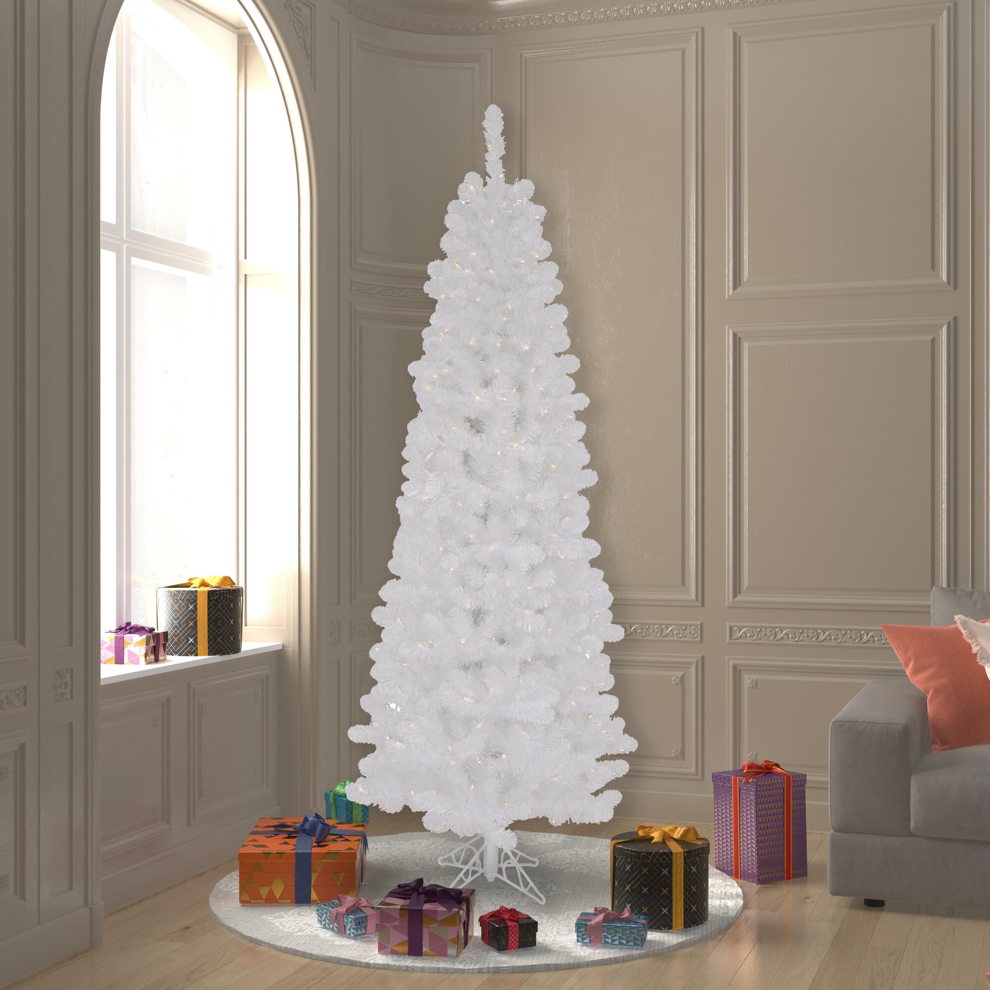 Vickerman 7.5′ White Salem Pencil Pine Artificial Christmas Tree, Clear Dura-lit Incandescent Lights
