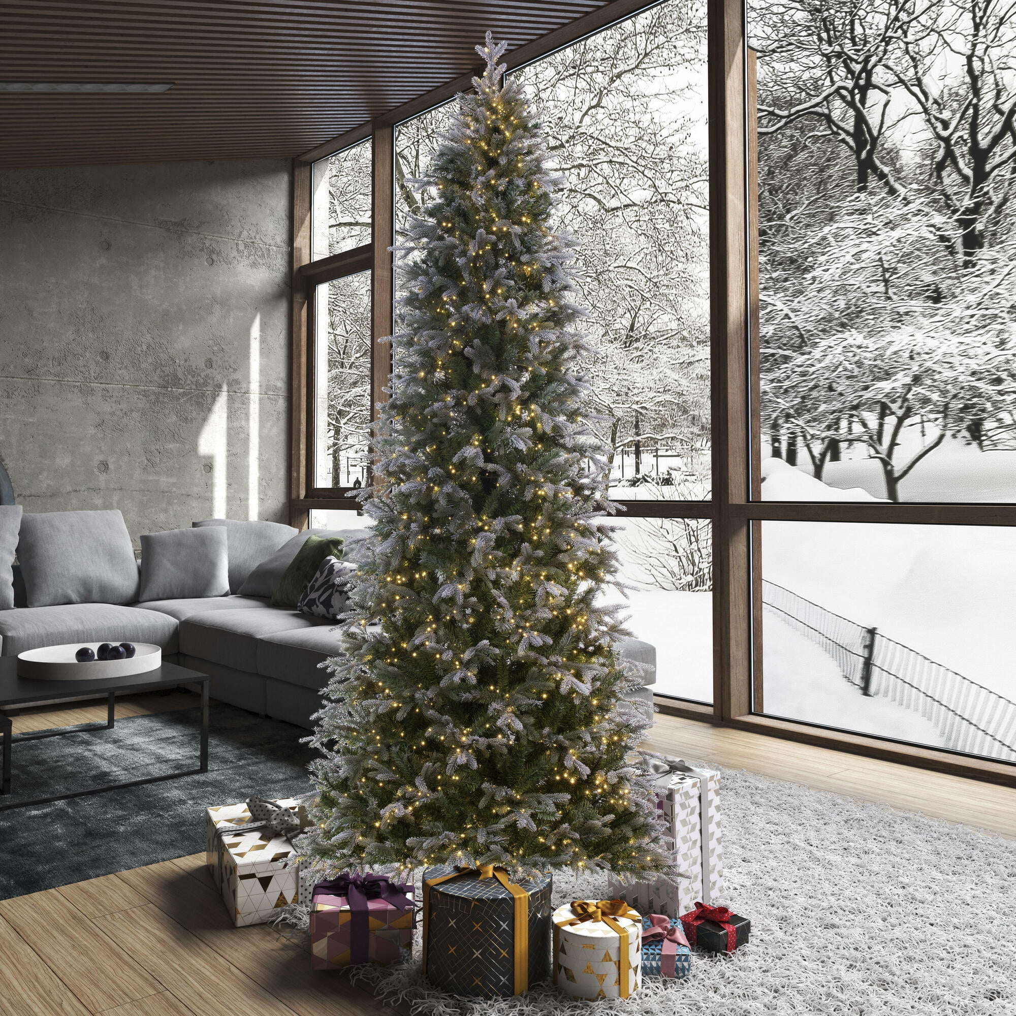 Vickerman 7.5′ x 44″ Frosted Douglas Fir Artificial Pre-Lit Christmas Tree, Warm White LED Lights.