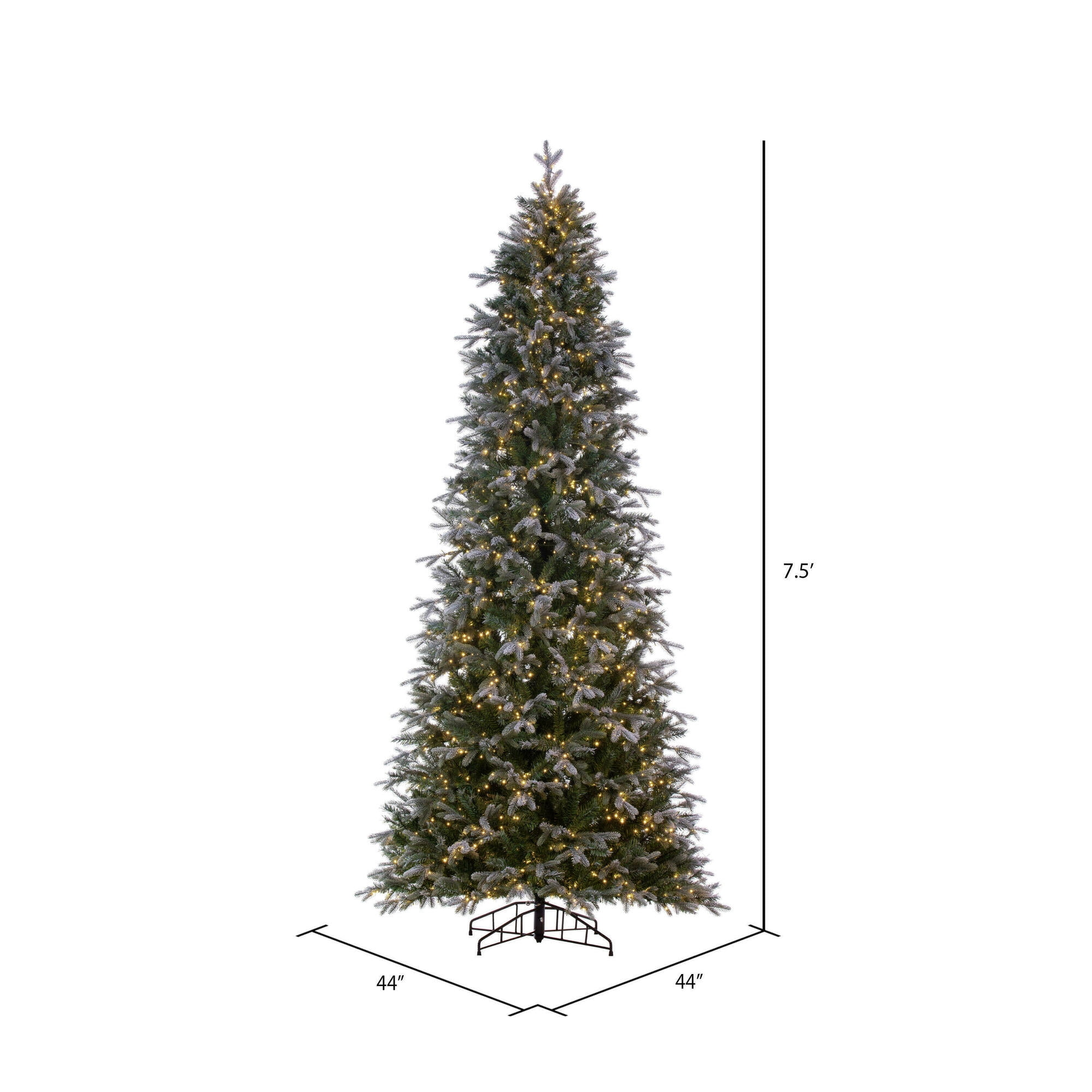 Vickerman 7.5′ x 44″ Frosted Douglas Fir Artificial Slim Pre-Lit Christmas Tree with 500 Dura-Lit® Warm White Mini Lights, 2092 Realistic PE/PVC Tips and Folding Metal Tree Stand
