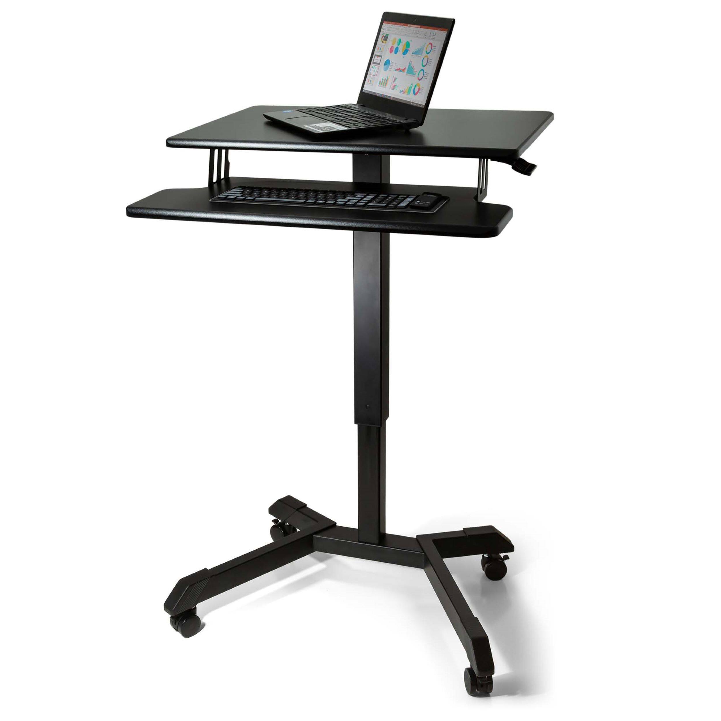 - Product Name: Mobile Adjustable Standing Desk with Keyboard Tray 25.6″ Wide