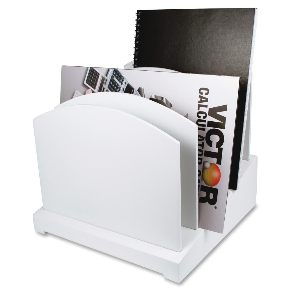 Ideal for home or the office, this incline file is part of the Victor Pure White Collection that combines functional solutions with appealing design elements. Incline file provides five, full-size file slots to hold files, letters, notebooks and papers. Removable dividers let you adjust the slot sizes. Sturdy, 4-6/10 lb. wood construction features a durable, double-coated white finish. Nonslip rubber feet reduce movement and protect your worksurface from scratches and scuffs. Victor W8601 Pure White Incline File, White, 1 Each (Quantity)