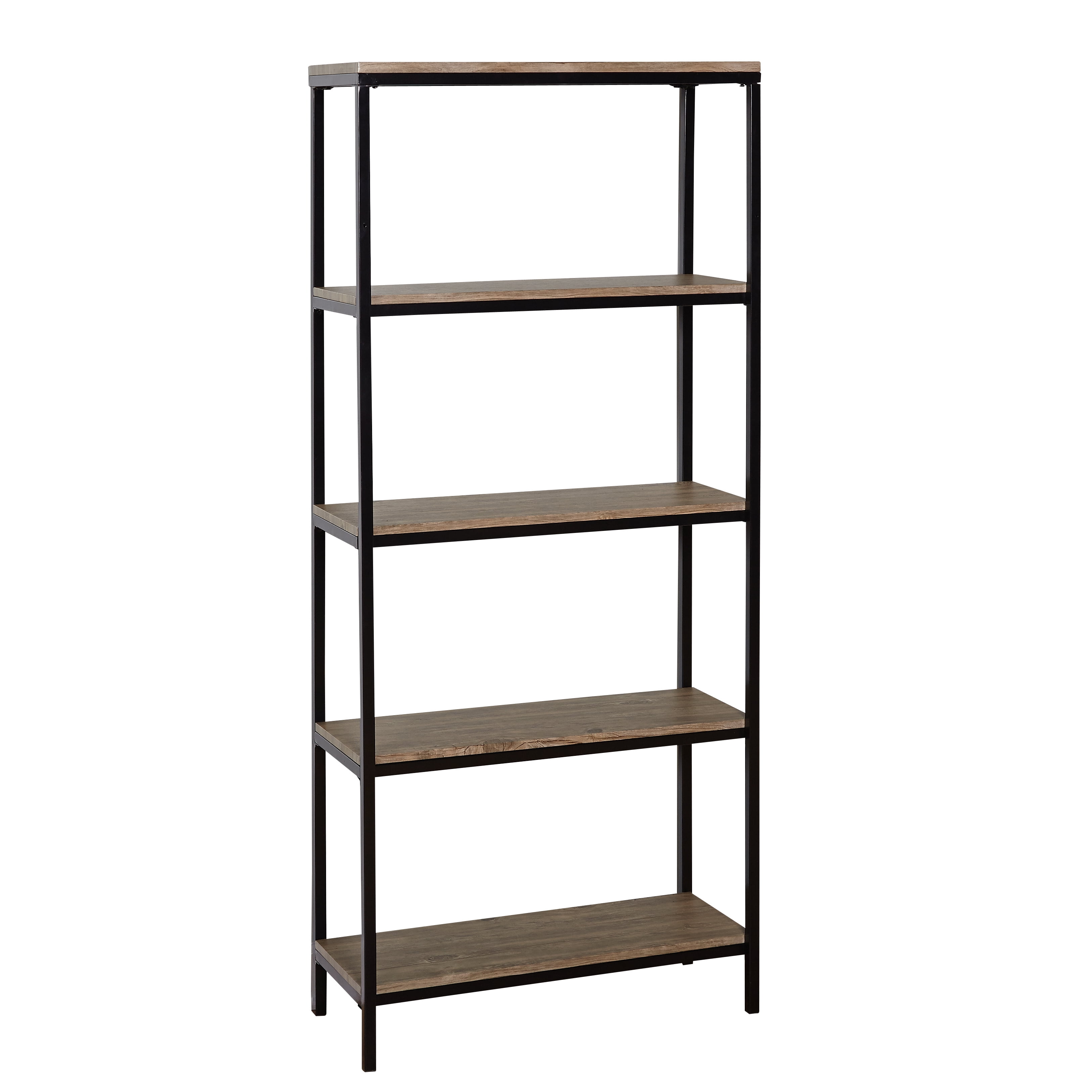Sturdy black metal frame Five (5) shelves Includes: One (1) bookshelf