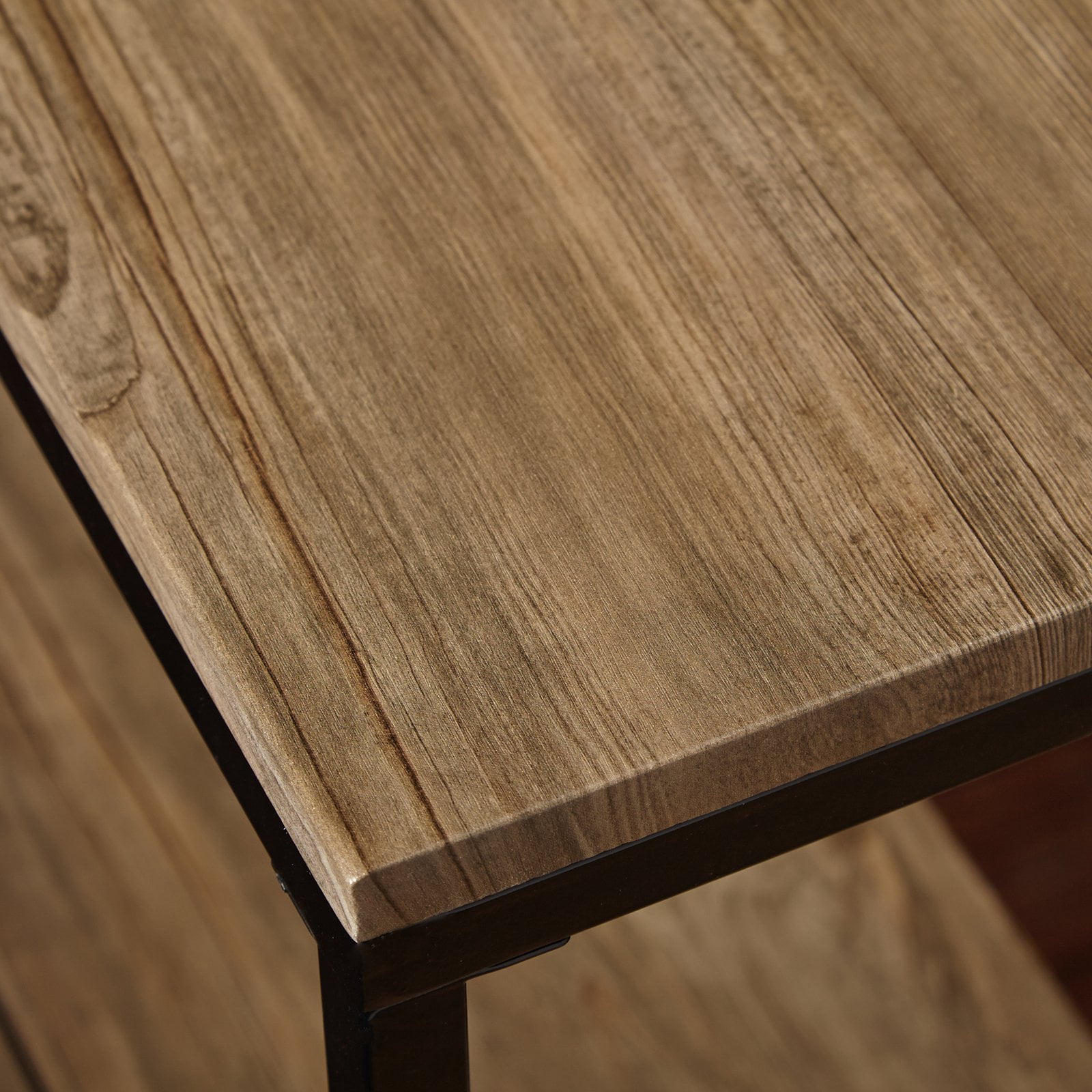 The Simple Living Piazza 5-tier bookshelf features a bold blackmetal frame accented with reclaimed look natural finish. Can blendwith any decor from contemporary to modern. Five fixed shelvescreate plenty of room for any decorative and storage items. Use this Simple Living Piazza five-tier wood and metalbookshelf to keep your home office essentials – such as a printer,paper, manuals and books – off the floor. Alternately, use thisattractive shelf to display the latest magazines and decorativeaccent pieces in your living room, bedroom or den. Sturdy black metal frame Five (5) shelves Includes: One (1) bookshelf Materials: MDF board, laminated PVC, metal Finish: Natural, reclaimed look Dimensions: Top Shelf: 28 inches wide x 10.1 inches deep Second Shelf: 28 inches wide x 10.1 inches deep x 13.75 inches high Third Shelf: 28 inches wide x 10.1 inches deep x 13.5 inches high Fourth Shelf: 28 inches wide x 10.1 inches deep x 13.75 inches high Fifth Shelf: 28 inches wide x 10.1 inches deep x 13.5 inches high Overall dimensions: 66 inches high x 28 inches wide x 12 inches deep
