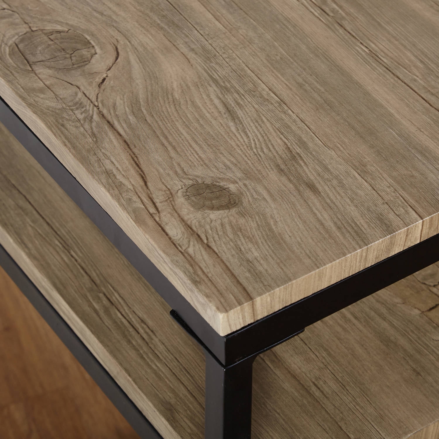Includes: One (1) coffee table Materials: MDF, metal Finish: Natural reclaimed look