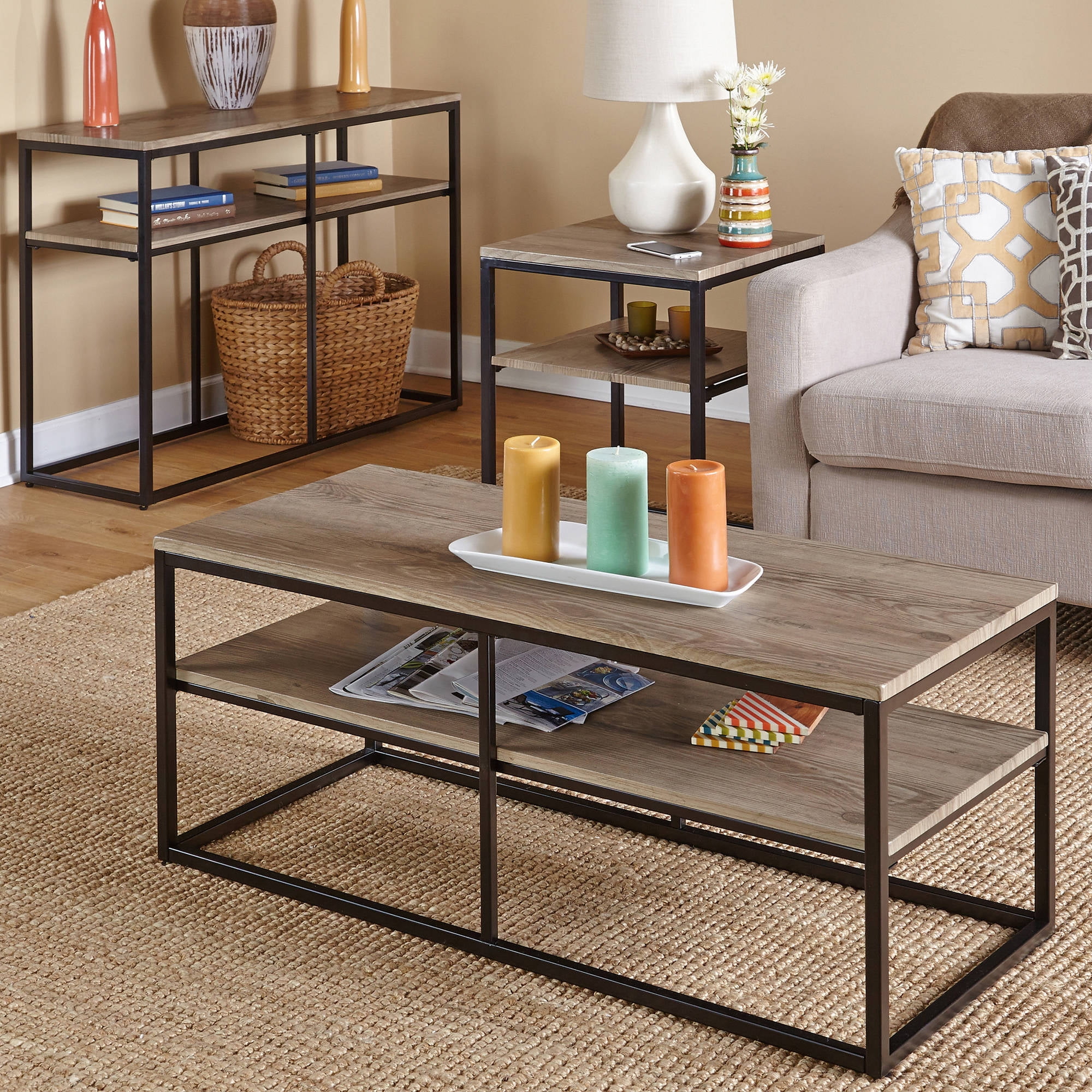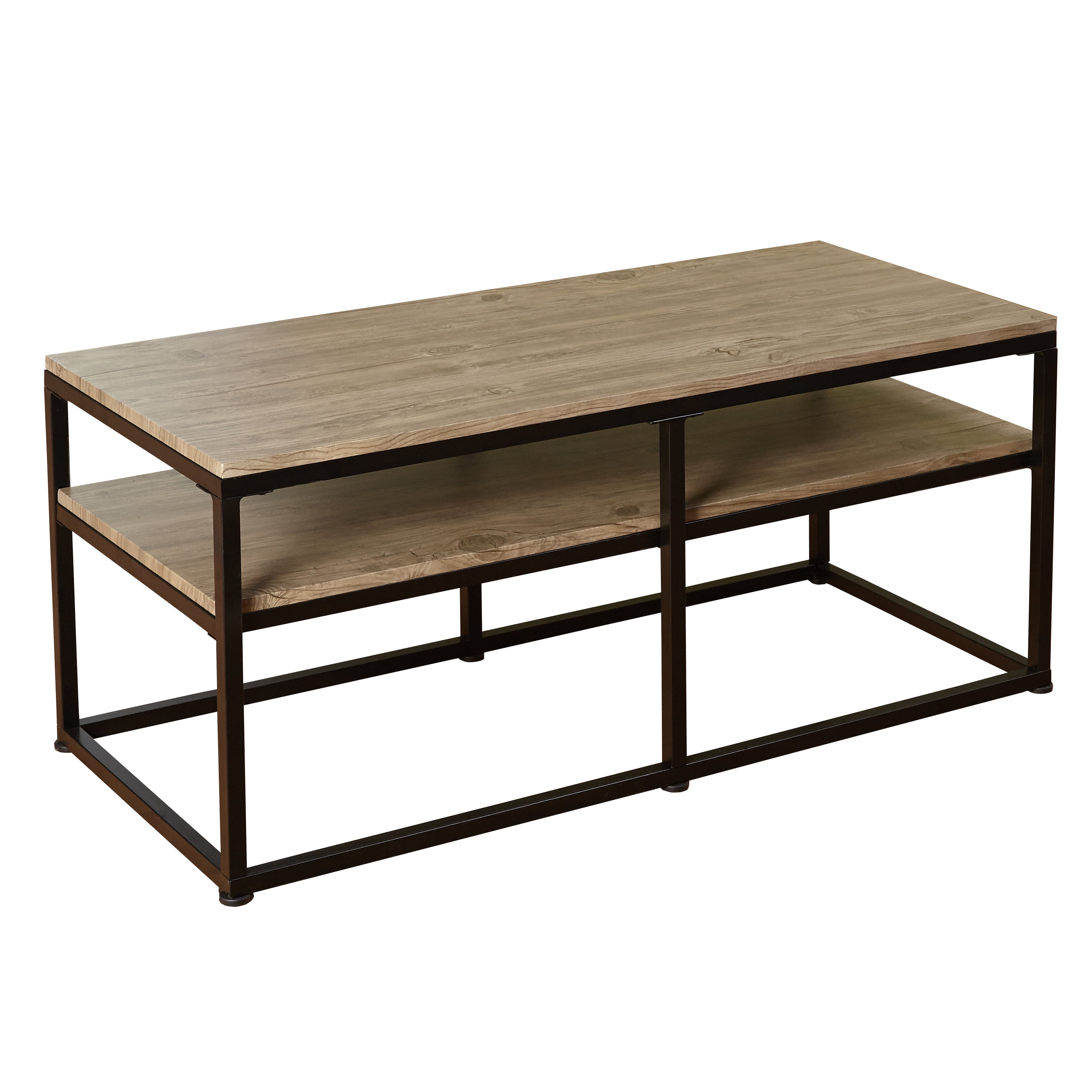 Add the Simple Living Piazza Coffee Table to your living space for an instant update. The bold black metal frame accented with a reclaimed look natural finish table top can blend with any decor from contemporary to modern. Includes: One (1) coffee table Materials: MDF, metal Finish: Natural reclaimed look Overall dimensions: 18.3 inches high x 42 inches wide x 18.1 inches deep Shelf dimensions: 4.5 inches high x 42 inches wide x 16.3 inches deep Assembly required Please note: This item does not ship to Hawaii or Alaska.