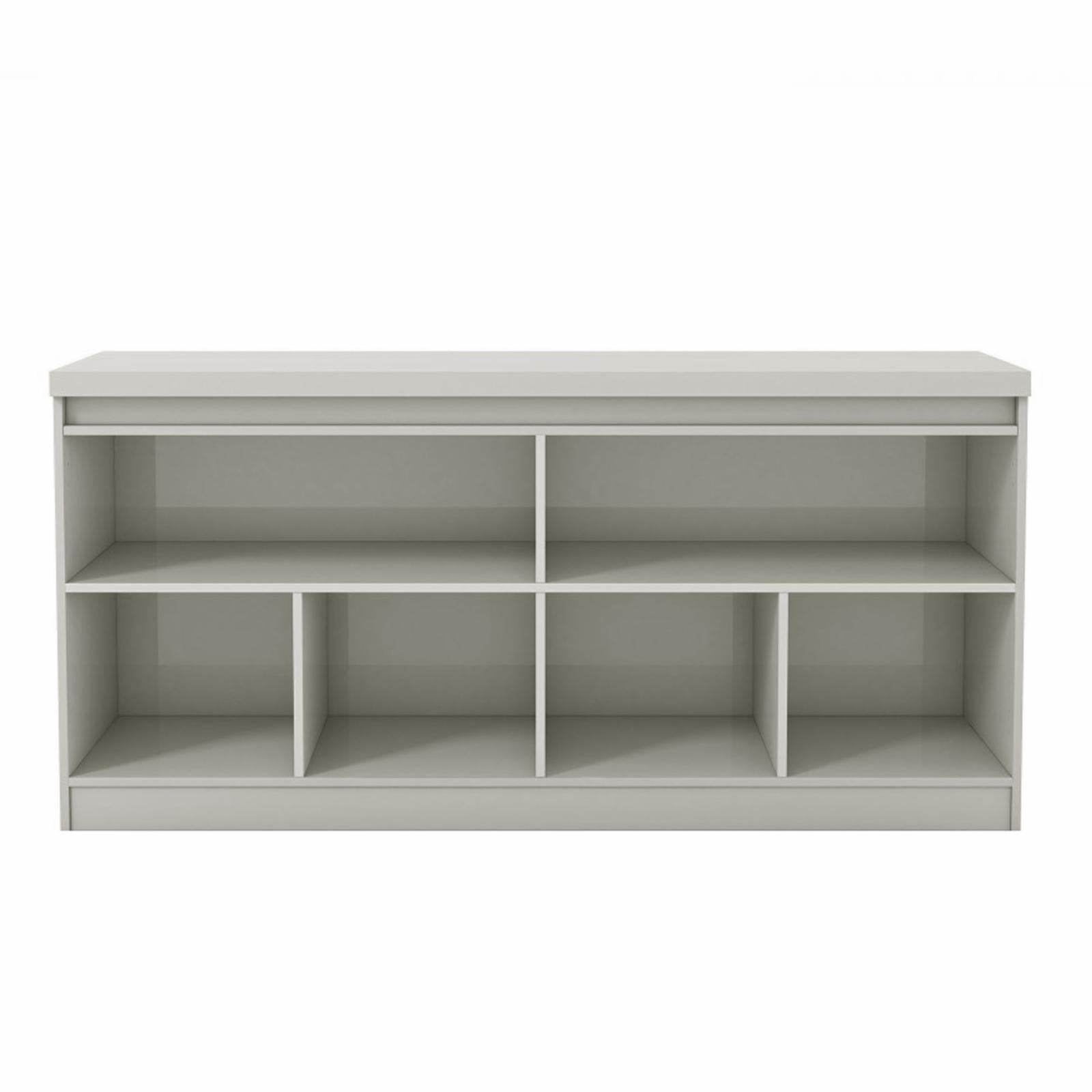 Modern Buffet/ Sideboard for Dining Room use. Upon Assembly, Measures: 62.99 in. Length, 28.14 in. Height, 17.36 in. Depth No Legs. Closed Mop Base. Can be used in Hallway Entryways as Consoles or Cabinet Space in Dining Room. Gloss Ultra Resistant Finish through an Eco-Friendly Process which Allows you to Feel the Natural Wood Tones. Concealed and Ample Storage for Chinaware. Includes 6 Shelves and 4 Doors . Home Assembly Required. All Hardware Included