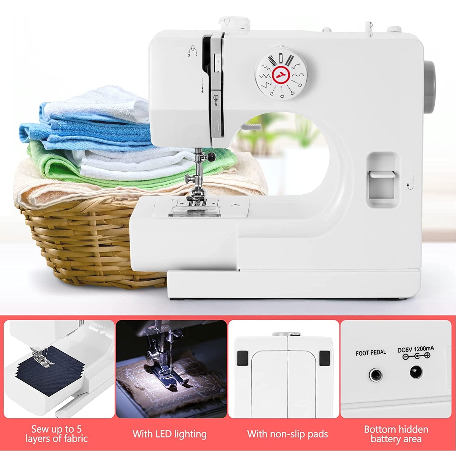 VIFERR newest sewing machine is much smoother than other older versions of sewing machines(More affordable than the SINGER Mending Sewing Machine), there are 12 stitch patterns, each corresponding to a different sewing method, has a double thread and double speed, with automatic rewind and rewind needle, no thread jams, and no broken needles, eliminating the worries and troubles that may be caused by other old sewing machines for you~ ????Choose VIFERR Advantages: 1. Professionally Manufacture Sewing Machine, Quality Assurance 2. Two-Day Delivery for 3. Professional Customer Service 24 Hours Online 4. 30 Days Free Returns ???? ▶ SPECIFICATIONS: Brand VIFERR Number of lines Double line Drive form Electric + manual Stitch type Straight line + curve, 12 kinds of stitches Power specification US plug Product size 28.5*13.6*24.8cm Packing size 31.1*14.7*29.5cm Product weight 2800g Power parameters DC6V-1200mA Notes: Due to the different monitor and light effects, the actual color of the item might be slightly different from the color shown in the pictures. Please allow 1-3cm measuring deviation due to manual measurement. Thank you for your understanding!