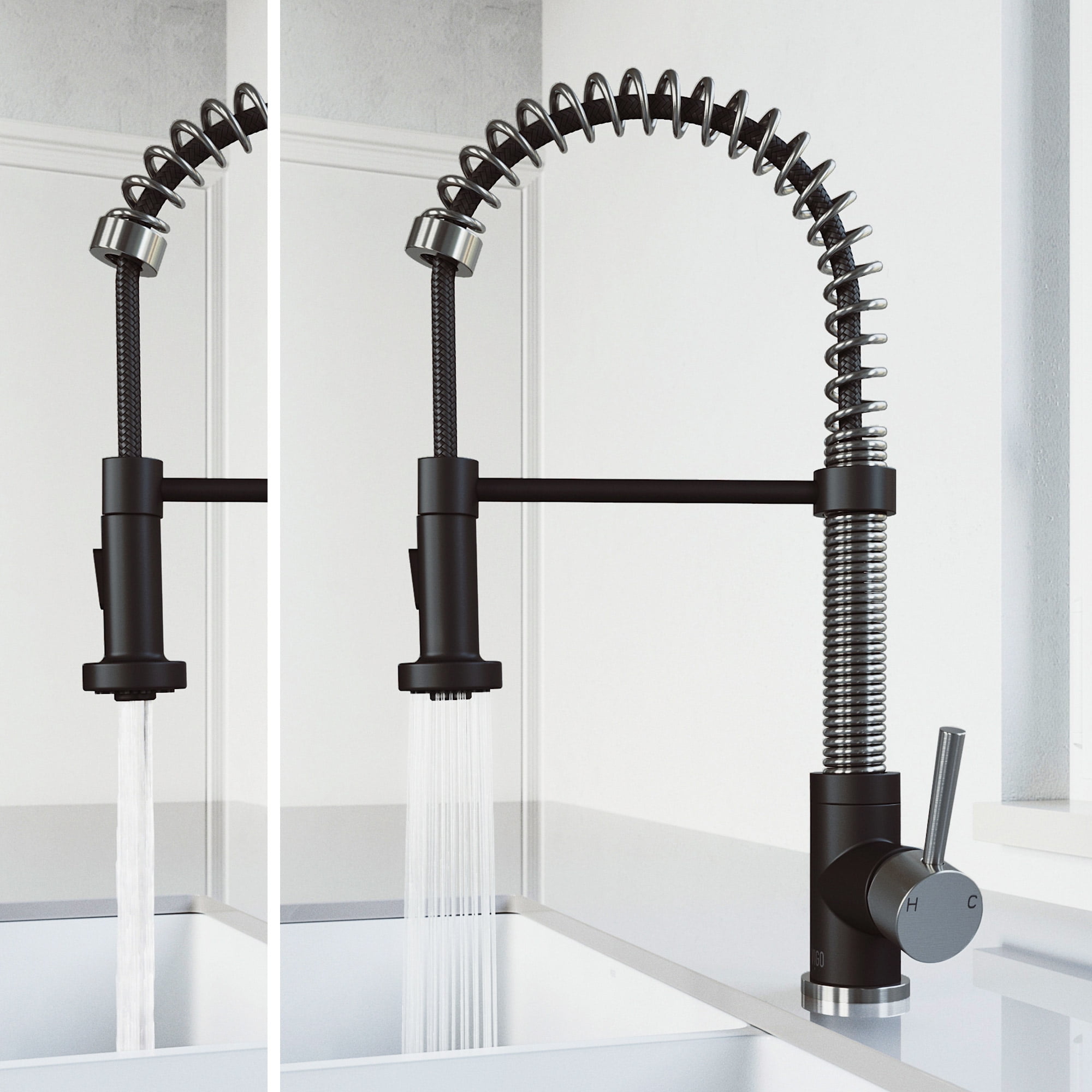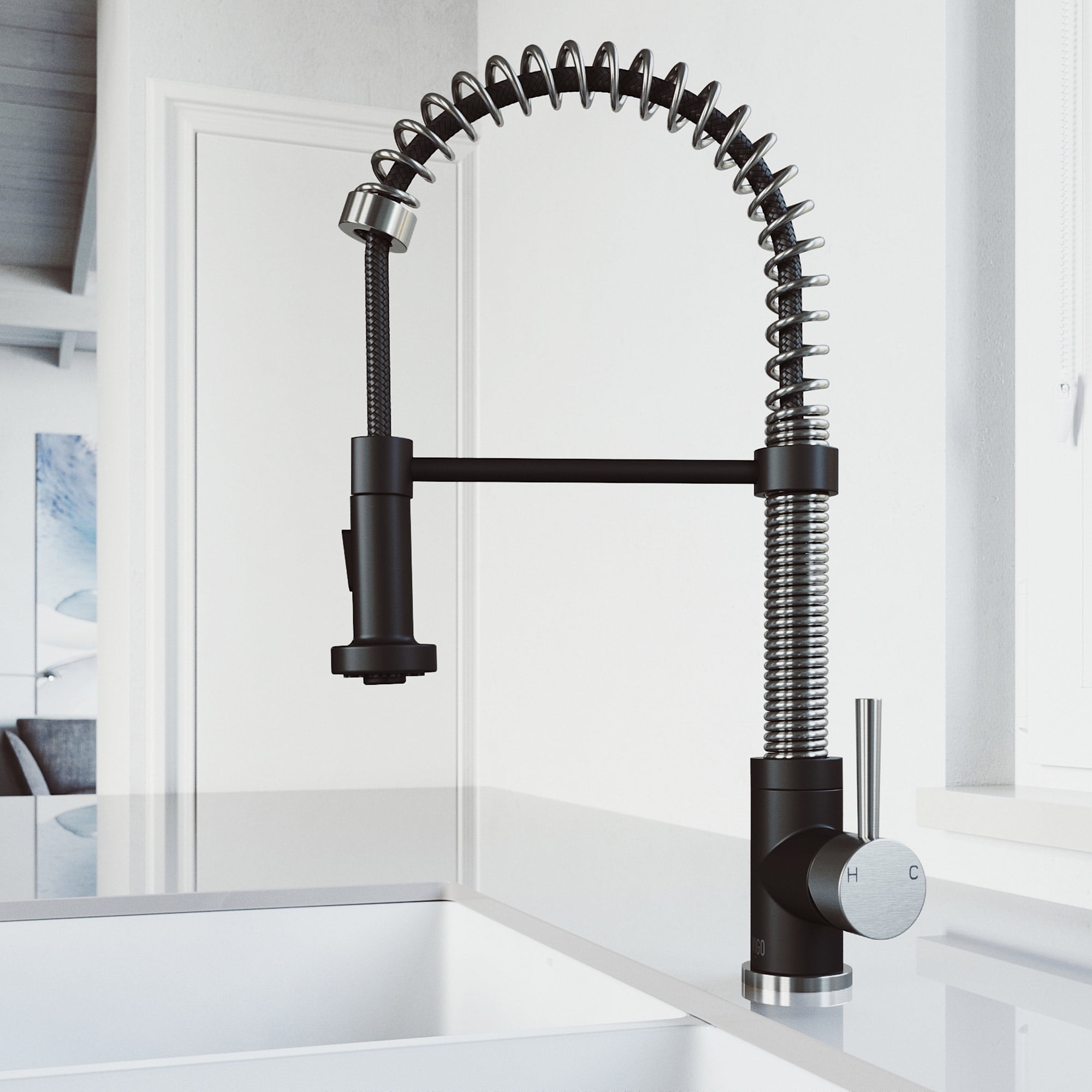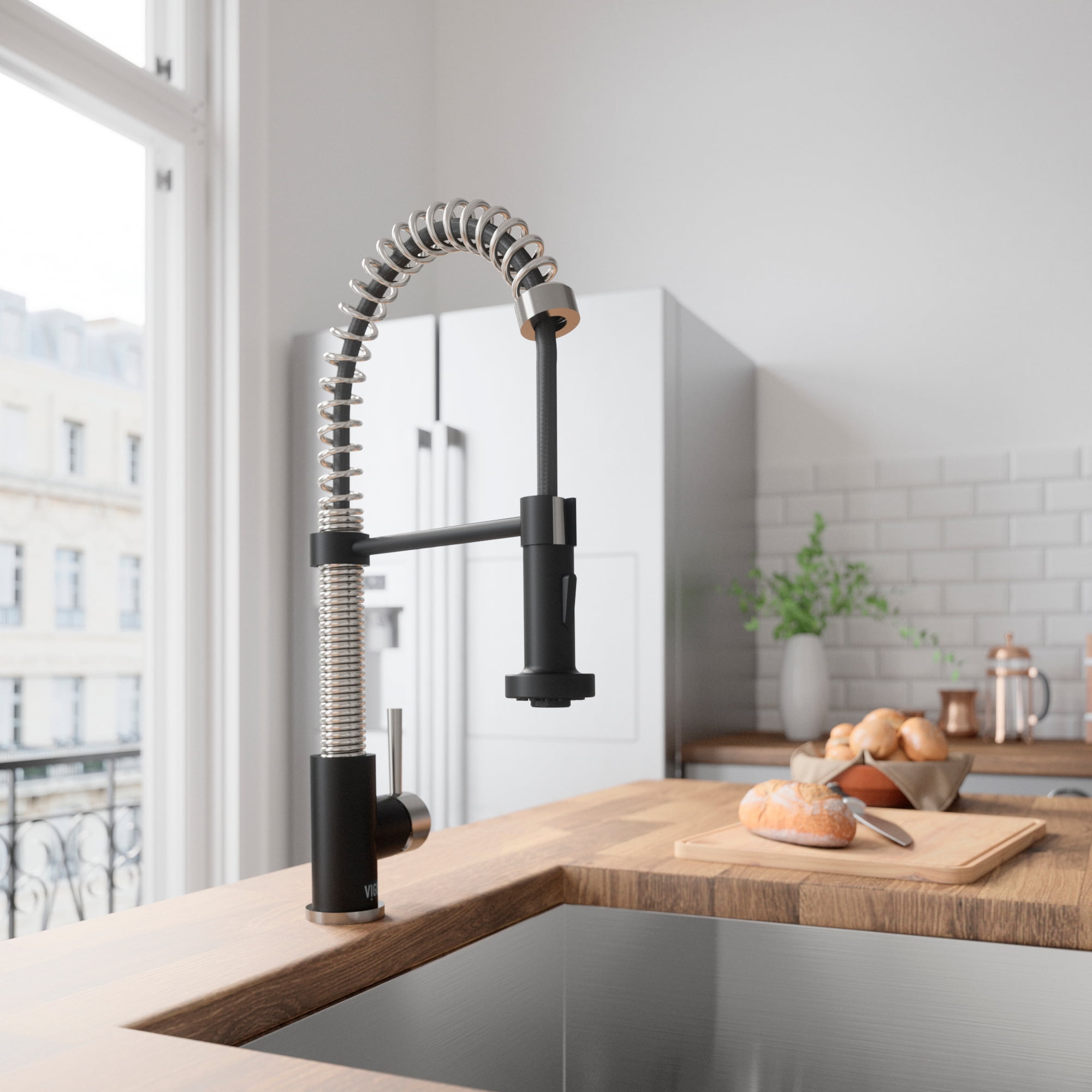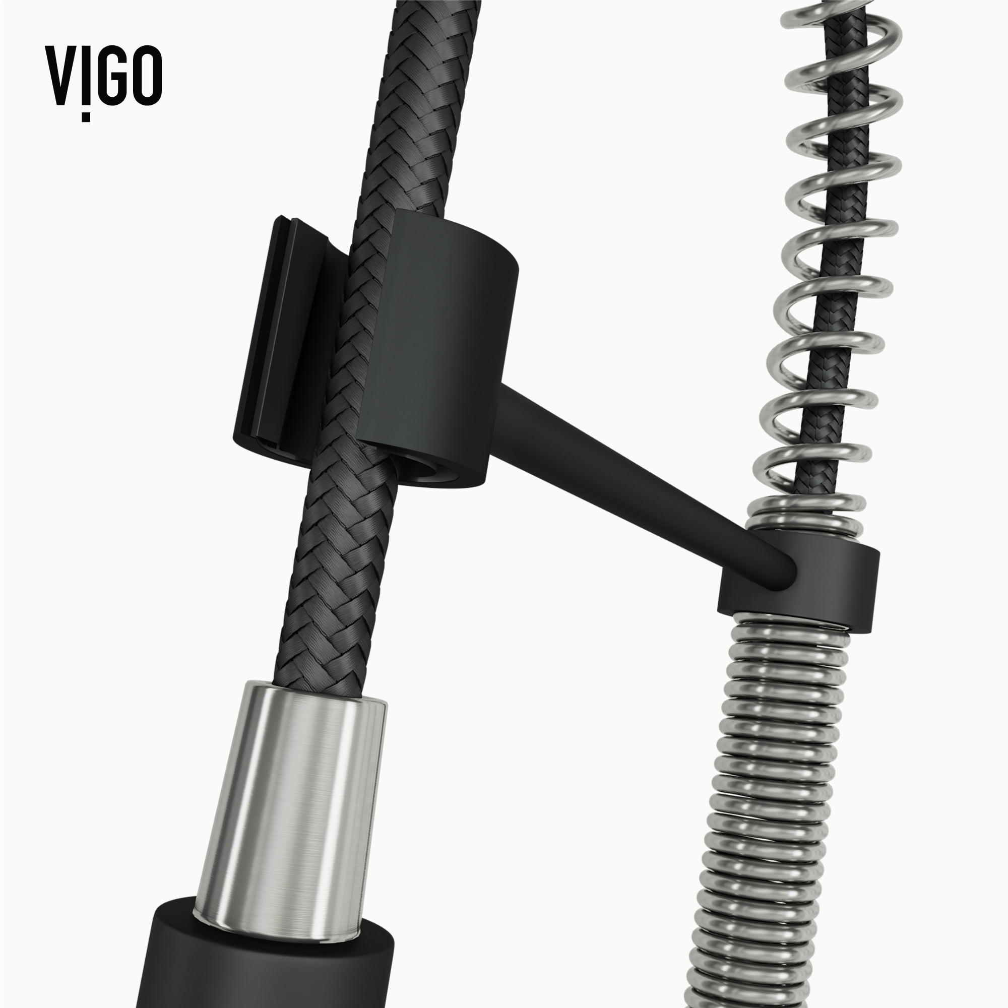 VIGO Edison Single Handle Pull-Down Sprayer Kitchen Faucet in Stainless Steel and Matte Black