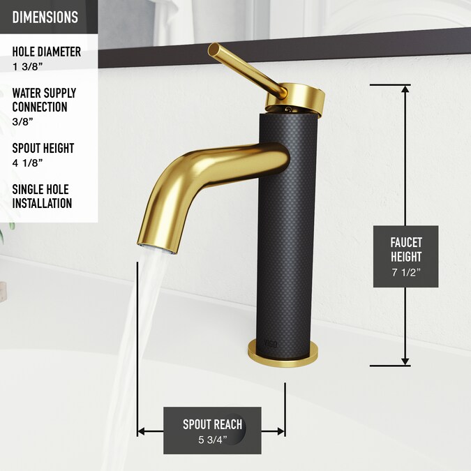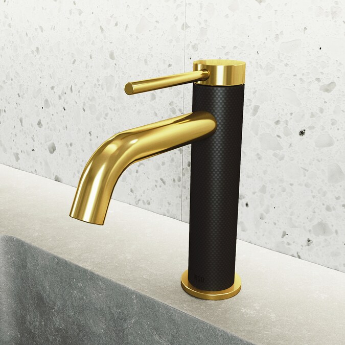 - LUXURY REDEFINED: with the 7.5-in H CFiber© bathroom faucet, where cutting-edge carbon fiber meets sleek matte brushed gold crafting a one-of-a-kind masterpiece for your bathroom sanctuary