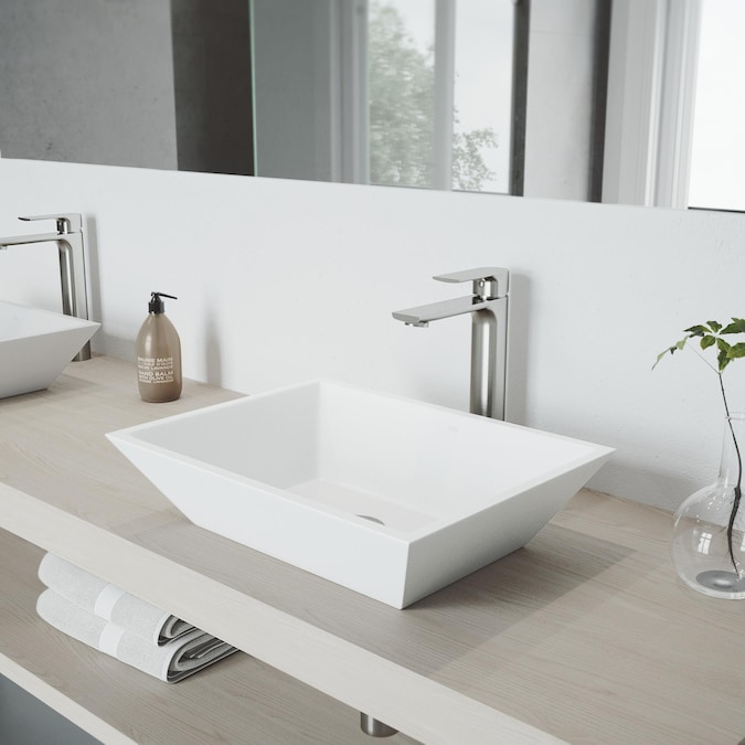 With a timeless yet modern design, the VIGO Norfolk single hole vessel bathroom faucet in brushed nickel creates a contemporary elegance in any bathroom. The faucet boasts a statuesque height to accommodate vessel bowl bathroom sinks plus a leak-resistant Sedal ceramic cartridge that has been tested for up to 500,000 uses. The stylish trough spout gives a waterfall effect when the faucet is in use, instantly elevating your bathroom to your own relaxing spa. Built from solid brass construction, the VIGO Norfolk is also plated in 7 layers of premium finish to resist rust, corrosion, and tarnish. The single lever bathroom faucet is ada compliant, as well as cUPC, NSF-61, and AB1953 certified by IAPMO. Great for water conservation, this bathroom faucet has a 1.2 gpm flow rate with a removable flow restrictor that allows the flow rate to increase to 1.5 gpm. In addition to the previous features, this faucet is also lead-free, making it safe for All to use every day. With a matching pop-up drain available for purchase separately, the VIGO Norfolk bathroom faucet is everything you’ve been looking for.