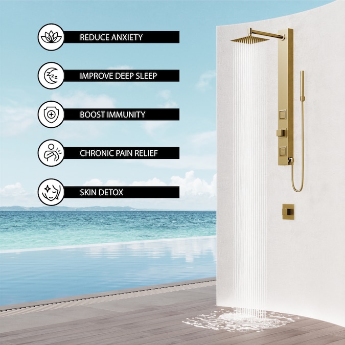 - ALL-IN-ONE SPA: The matte brushed gold 2 High-Pressure Jet shower panel combines multiple spa-inspired features into a single unit, providing a luxurious and rejuvenating experience