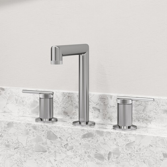 VIGO presents a modern three-hole bathroom faucet from the Sterling Collection. Sterling delivers a unique urban aesthetic to your home with widespread cross handles and curved corners. VIGO’s premium 7-layer hardware finish with diamond design adds a touch of luxury to its solid brass body. The high arc spout provides plenty of space for a comfortable hand-washing experience. The simple instructions make installation a breeze. Add visual interest to your bathroom space today with Sterling.