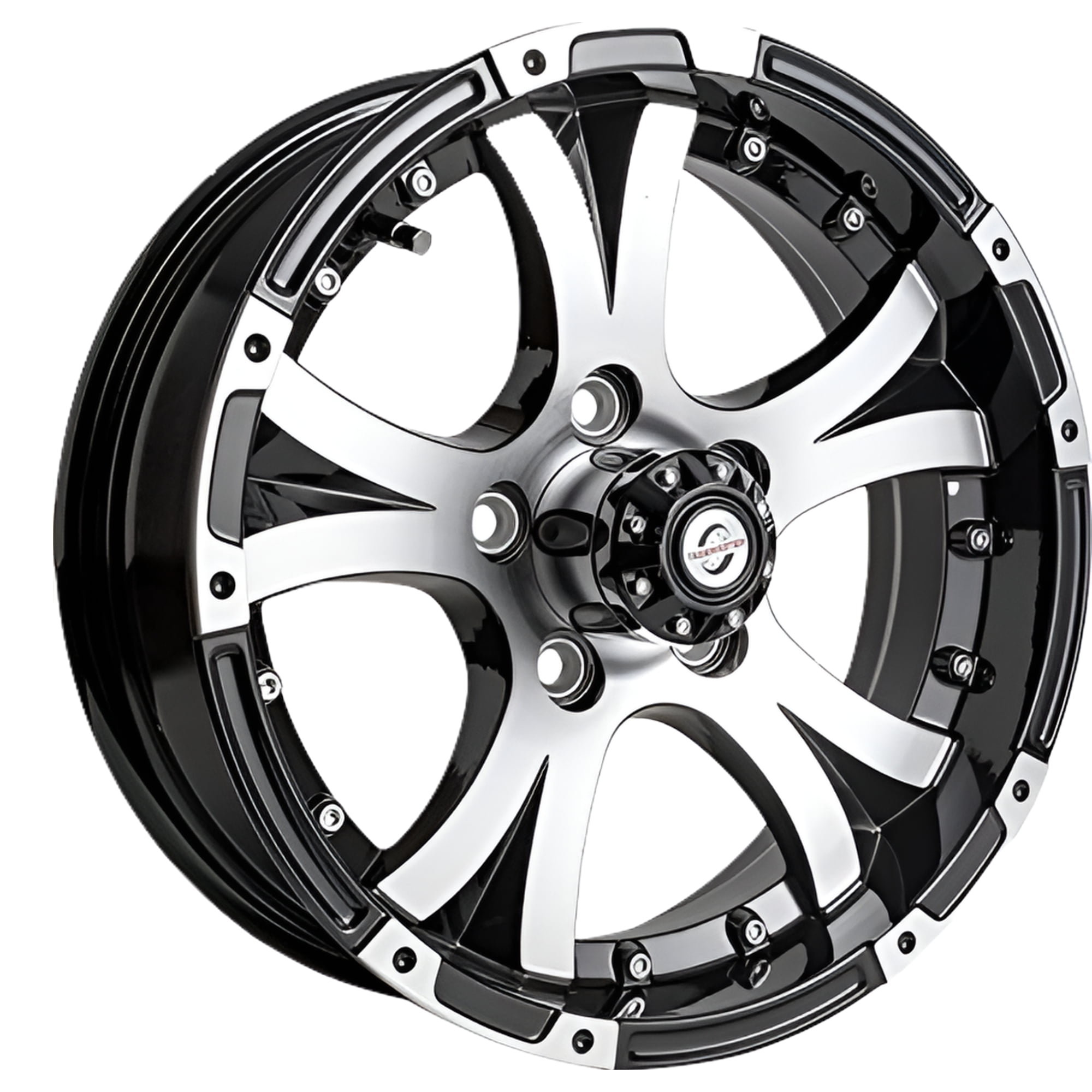 Viking Series Machined Lip and Face Gloss Black Aluminum Trailer Wheel with Black Cap – 15″ x 5″ 5 On 4.5 – 2150 LB Load Carrying Capacity – 0 Offset