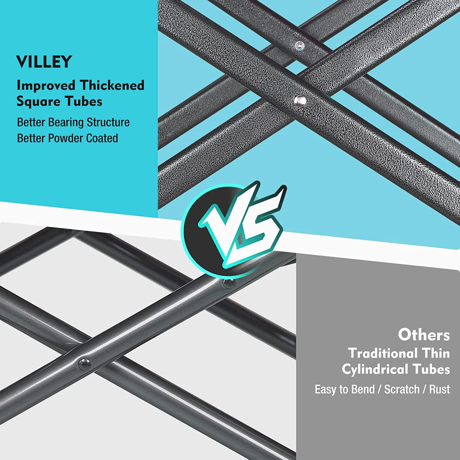 Size & Capacity – The camping folding chair measures 19-3/4″ L x 22-1/4″ W x 34-3/4″ H and weighs only 12.3 lbs. Maximum loading capacity 350 lbs for adult. Functional – Side table with a cup holder and detachable padded arm rest offer you long-lasting relaxation. 600D Oxford with solid padding and waterproof PVC coating has the advantages of anti-tear, slow aging and sun resistance. Heavy Duty – Industrial grade iron ensures a higher compressive strength than aluminum. The powder-coated and bolded frame is heavy-duty, anti-rust and anti-corrosion. Portable – This directors chair can be set up and folded in seconds. The chair can be stored at 4-1/4″ x 19-5/8″ x 34 5/8″, and can be stored almost anywhere. Multi-Purpose – Whether you’re a director or makeup artist, or it’s camping, lawn, picnic, tailgating, beach, or sports games, VILLEY portable camping directors chairs always meet your needs.