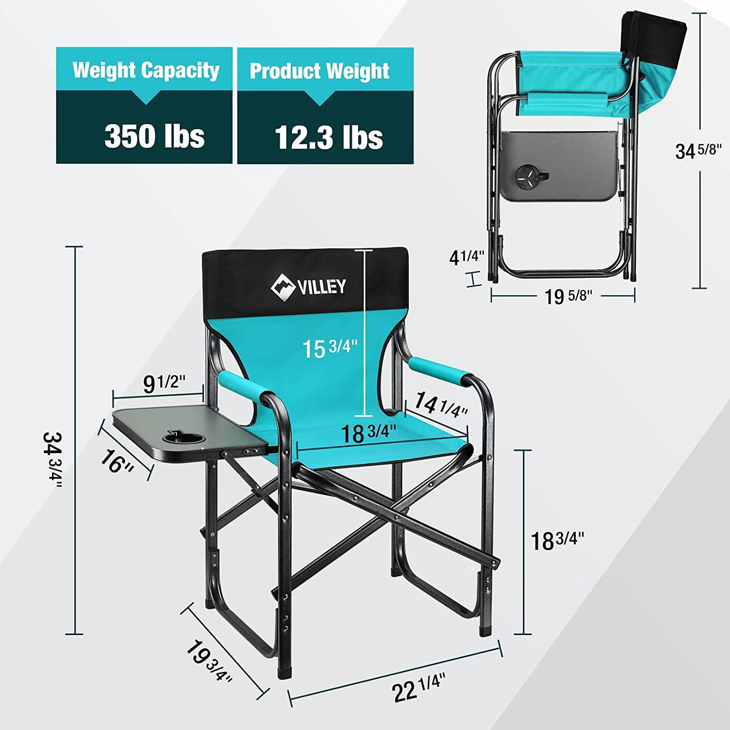 VILLEY Heavy Duty Directors Chair, Folding Camping Chairs, Portable Foldable Chair, for Camp Tailgating Lawn Picnic Fishing Beach, Supports 350 lbs for Adult, Teen, Blue
