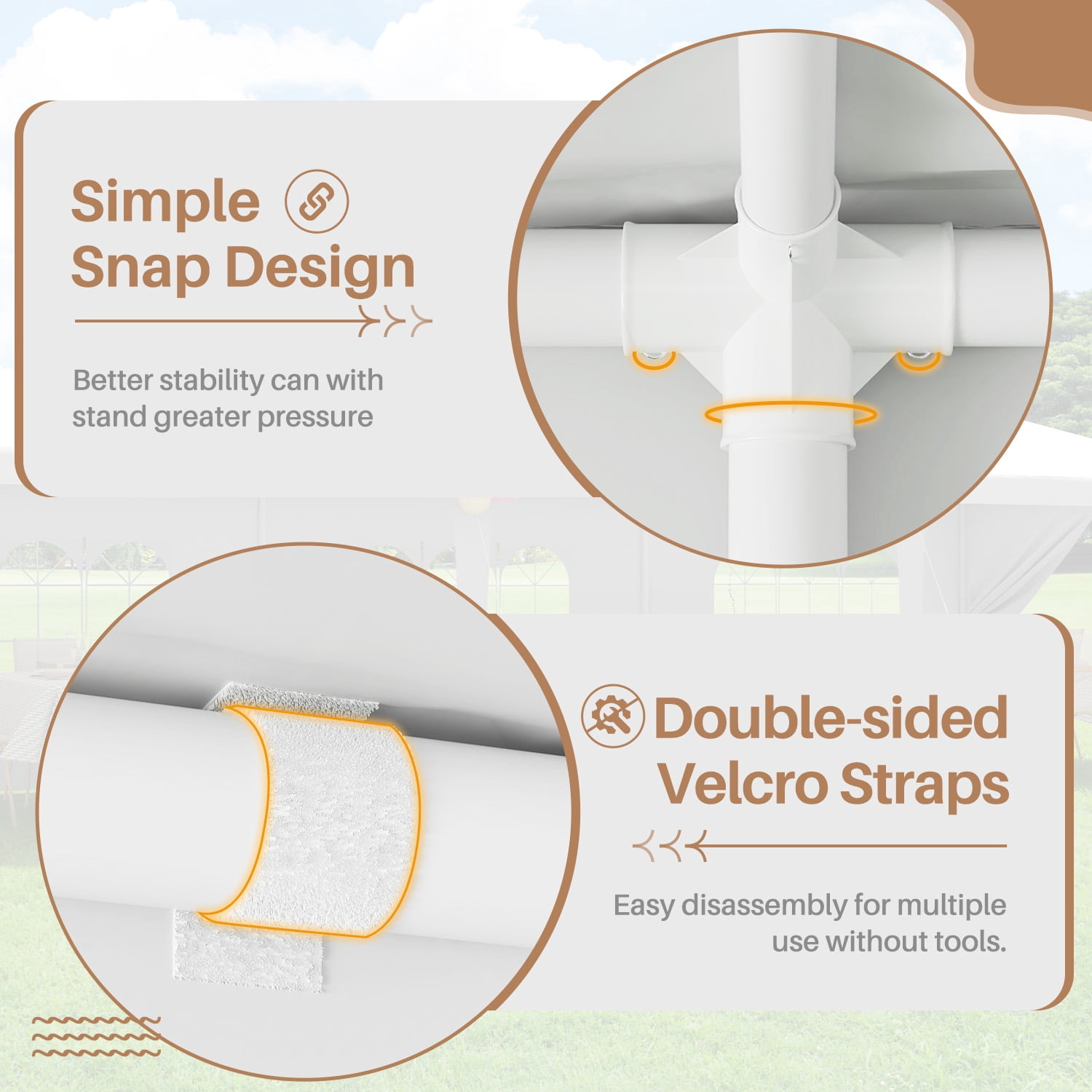Premium material:Canopy is made of polyethylene, waterproof and UV resistant. There is a rust-resistant and corrosion-resistant powder-coated metal frame made of 0.5/0.6mm steel pipe, and plastic connections between pipes enhance the stability of the tent frame, ensuring a strong and stable banquet hall. Large size :30 feet (L)X 10 feet (W)X 8.5 feet (H), with 6 detachable side walls and 1 zipper door providing ample shade and ventilation, can accommodate 50 people, suitable for weddings, parties, meetings, camping and other occasions. Sturdy and durable: Additional ropes and ground nails are provided to increase the stability of the party tent. You don’t have to worry about the safety of your tent when it’s windy and rainy outside Easy assembly: Outdoor party tents are easy to install without complicated screws. You need an assistant and don’t need any extra patio tent tools to assemble it. Note: We advise customers not to leave patio tents overnight or in adverse weather conditions. We will not be responsible for such weather damage. When choosing a party tent, it is up to the client to decide on the right weather conditions. Warning: The polyethylene fabric of the party tent is not fire resistant, please keep away from fire sources.