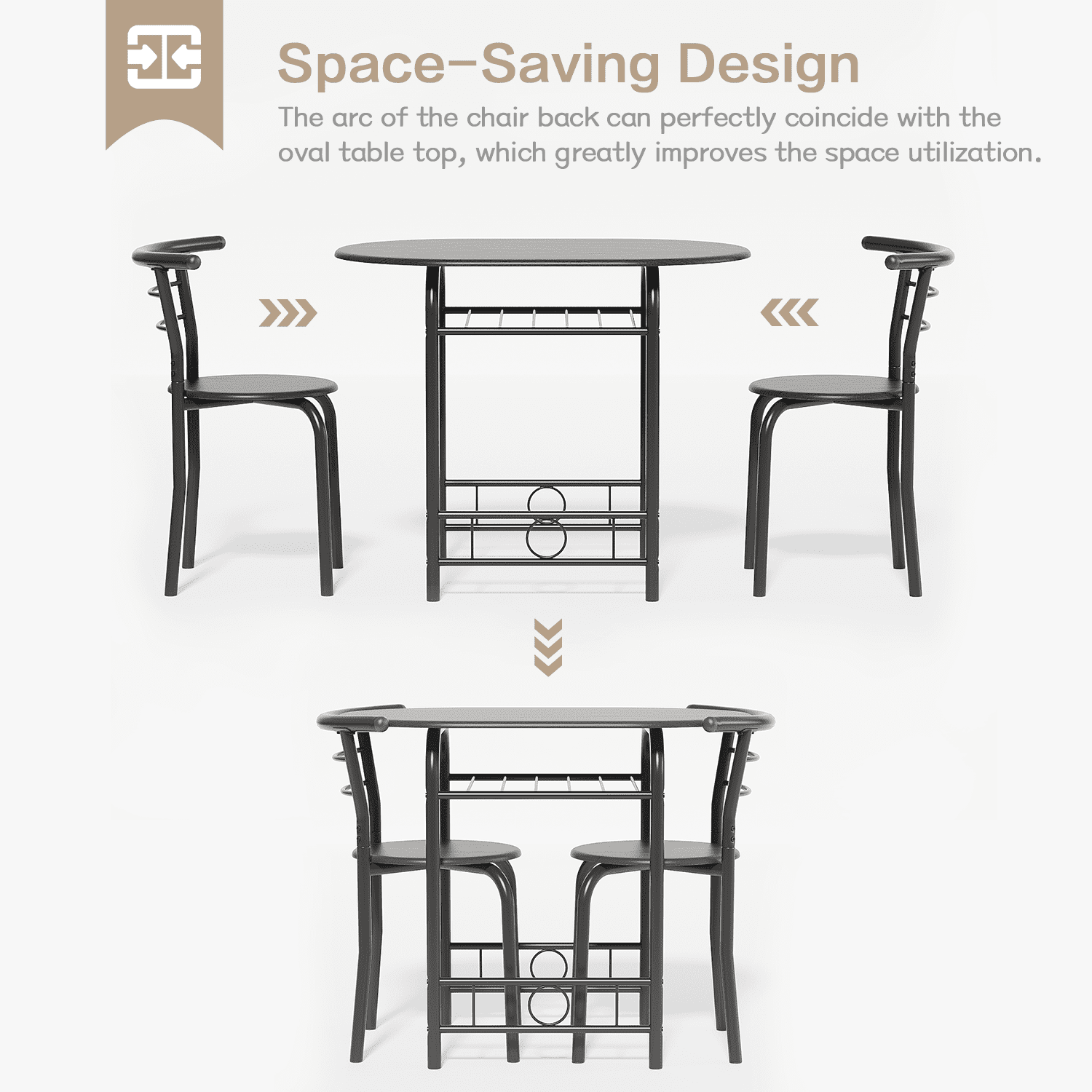 Vineego 3 Pieces Dining Set for 2 Small Kitchen Breakfast Table Set Space Saving Wooden Chairs and Table Set,Black